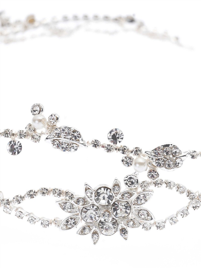 Haarschmuck mit Blumenformen verziert mit Strasssteinchen und Perlen
