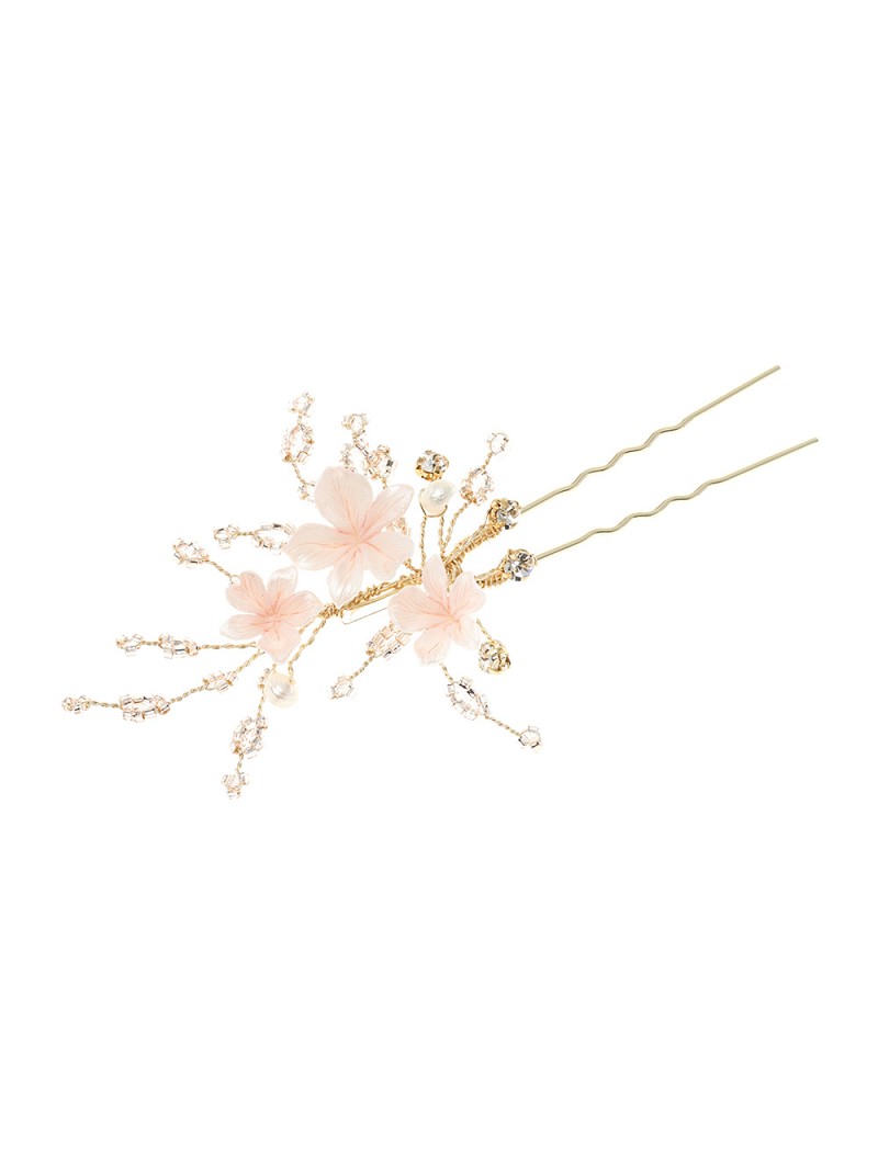 - Haarnadel mit Süsswasserperlen, Porzellanblümchen und Strasssteinchen in den Farben Rosa mit Gold oder Elfenbein mit Silber