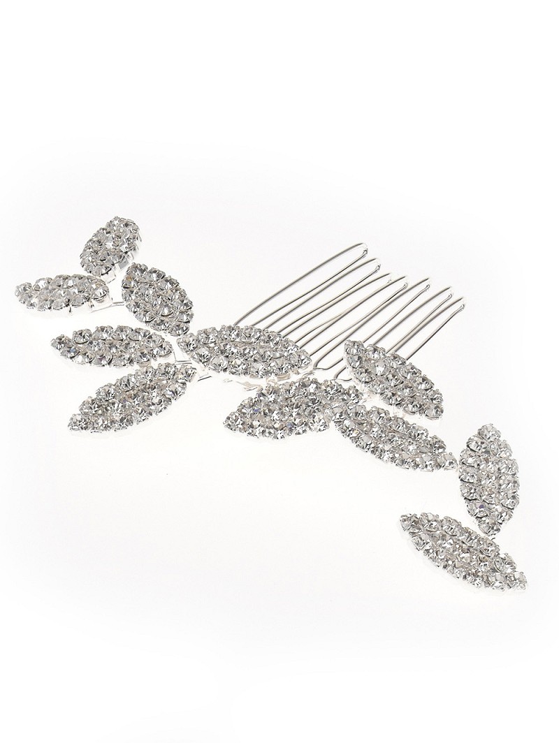 Haarschmuck in Blattform mit Strasssteinchen, auf Kamm
