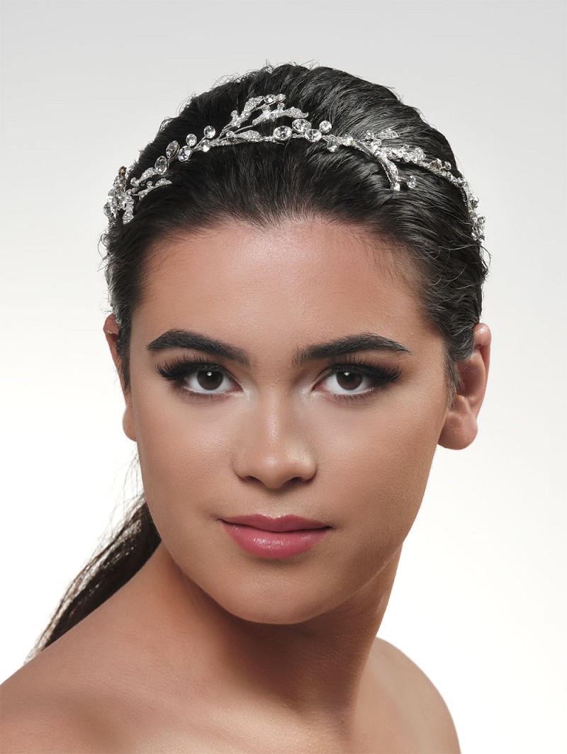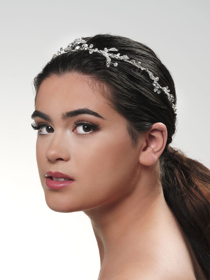 - Produkt: BB-671 – Haarschmuck mit Strasssteinchen und silberfarbenen oder goldfarbenen Blättern