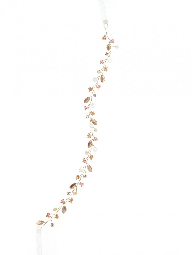 - Wenn Sie einen eleganten Haarschmuck mit Festival-Feel suchen, wählen Sie dieses Schmuckstück aus der Poirier Festival Collection. Dieser Haarschmuck hat eine goldfarbene Basis dekoriert mit goldfarbenen Blättern, goldfarbenen Perlen, rosafarbenen und natürlichen Kristallen und Strasssteinchen. Mit diesem Haarschmuck erhält Ihr Festival-Hochzeitslook einen phänomenalen Finishing-Touch, sodass Sie an Ihrem grossen Tag glänzen können.