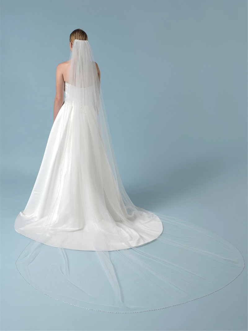 - Produkt: S215-350/1/MED – Schleier aus einlagigem Medium-Tüll, verziert mit Perlen an den Rändern