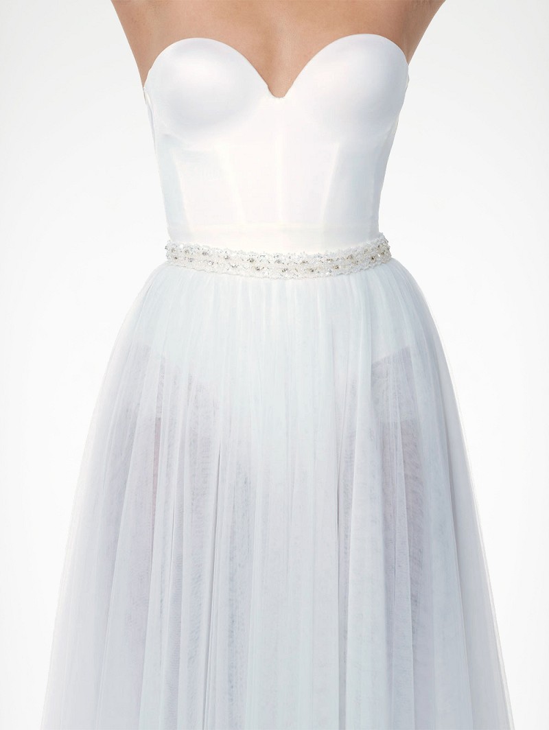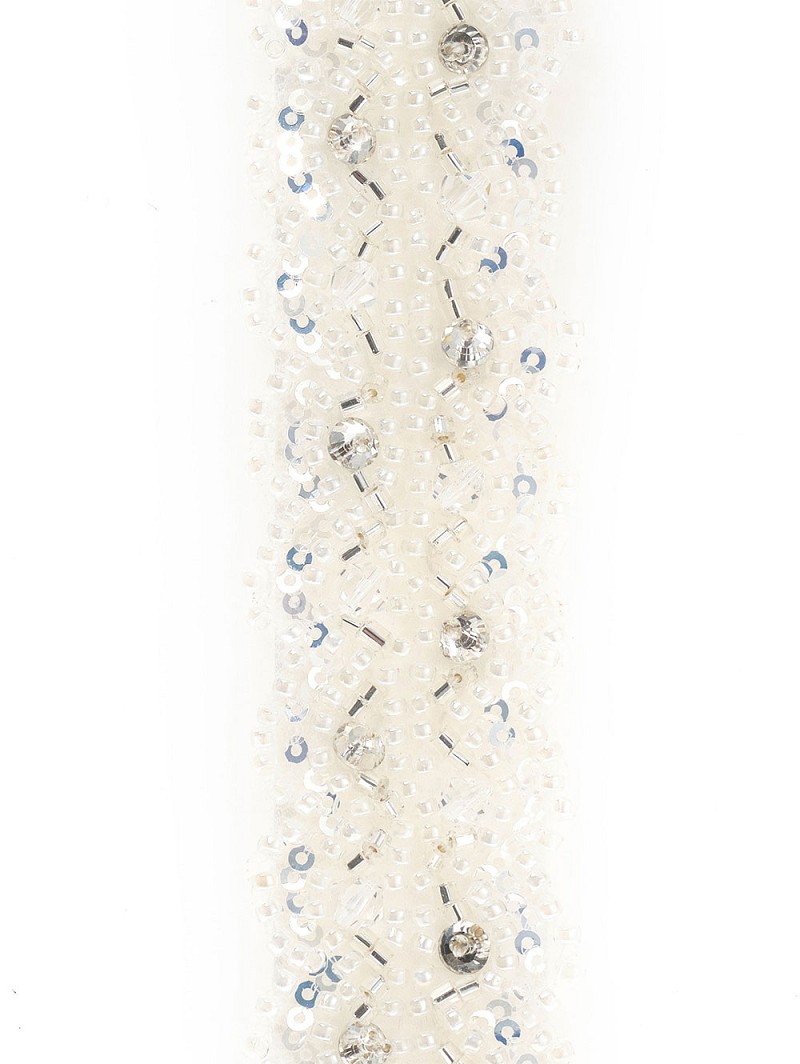 - Características: Ivory-colored or peach-colored belt, rhinestones, crystals, sequins