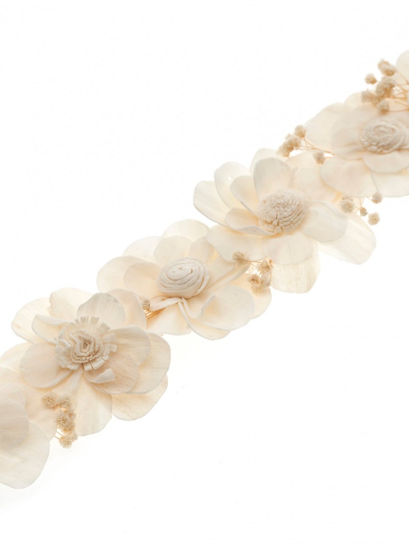 - Made out of deluxe lace ribbon, big ivory-coloured flowers, and real ivory-coloured gypsophila