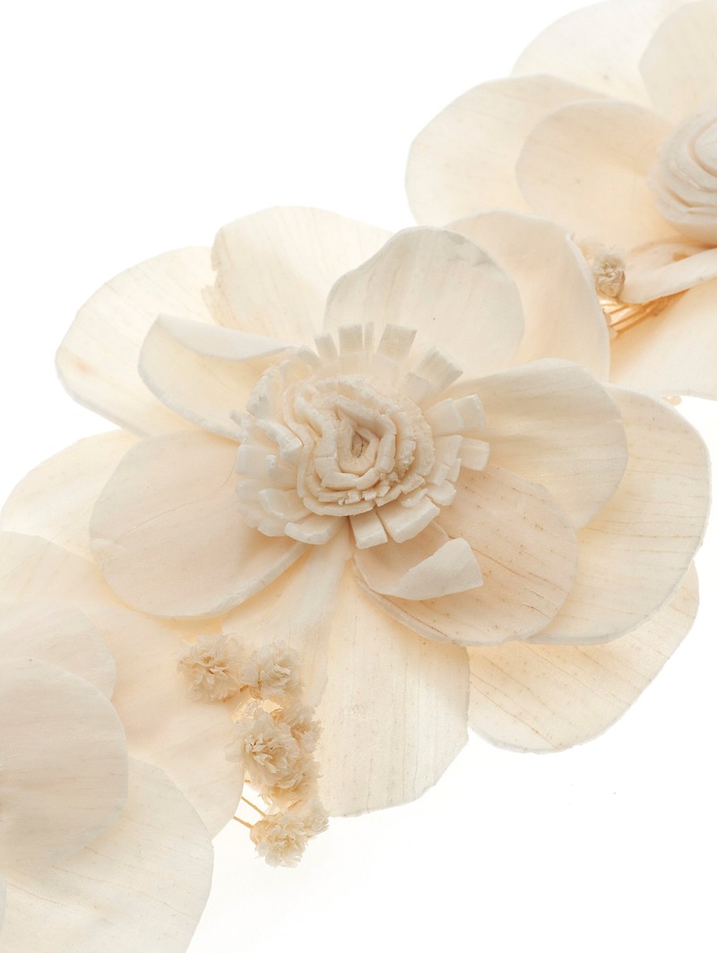 - Features: A base out of deluxe lace, big ivory-coloured flowers, real ivory-coloured gypsophila