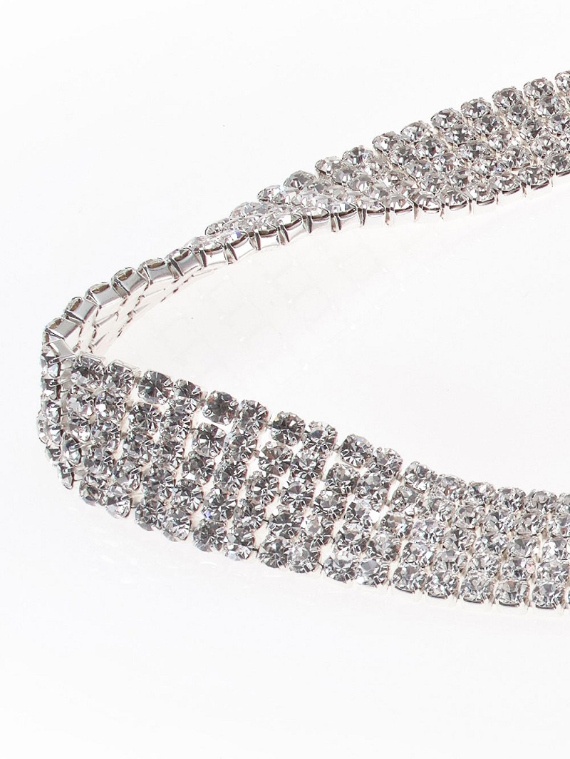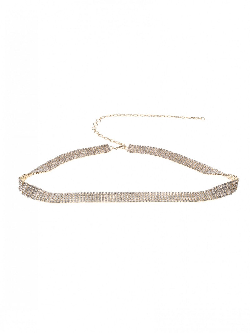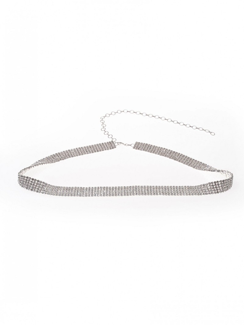 - Silver-colored or gold-colored belt with rhinestones all over