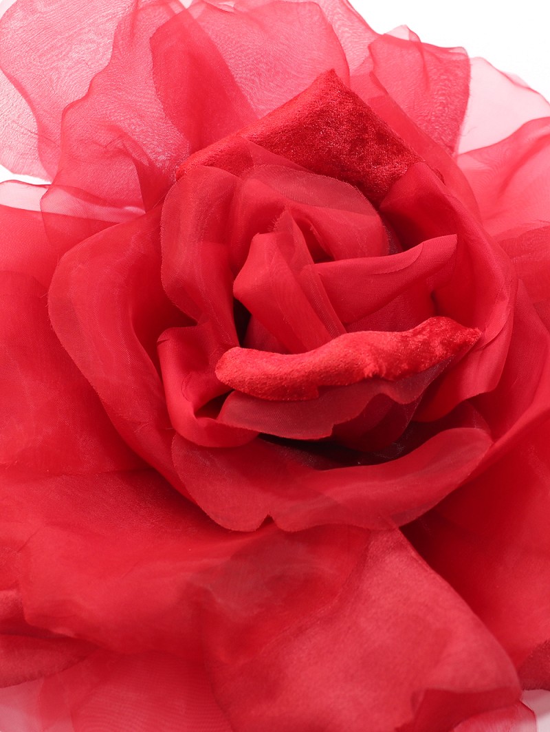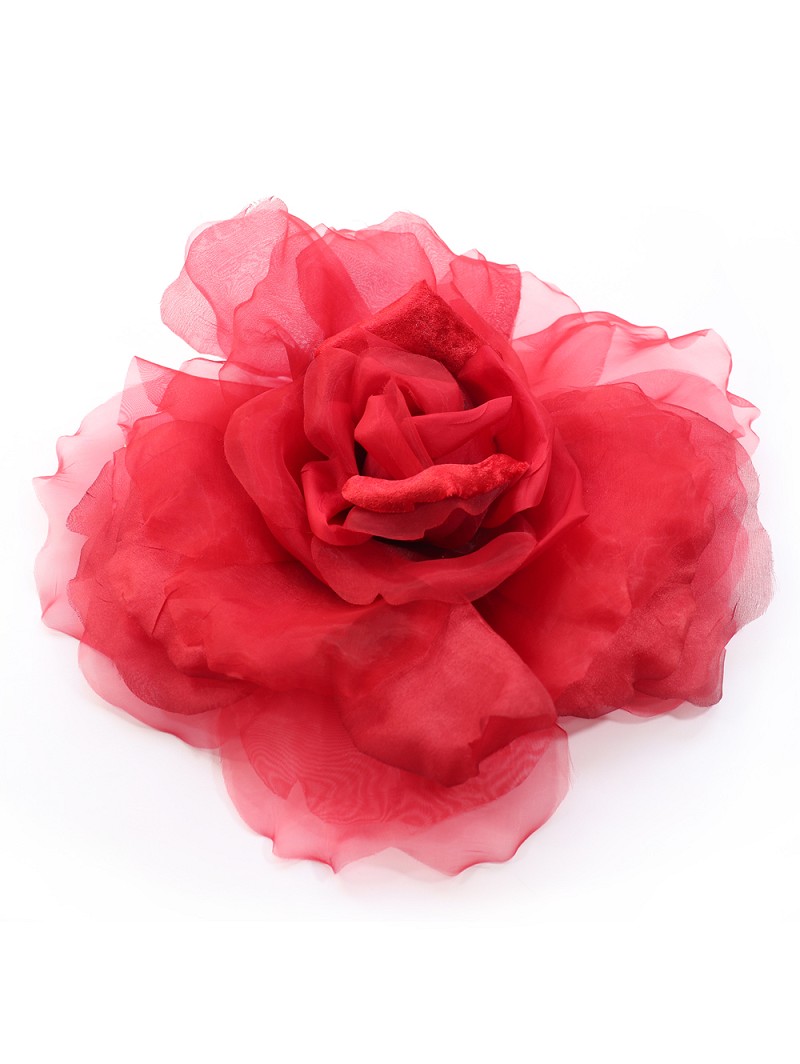 - Choose an accessory that never gets out of fashion, and make sure to incorporate this great item in your wedding outfit. This flower is made out of organza and a velvet-like fabric; the item has a diameter of 30 cm (11.8 inch). This decorative flower is multifunctional, because you can use it as an oversized corsage for either your wedding outfit or e.g. your Poirier hat. You can also attach this flower to your belt. There are many different options to use this flower. Choose from the different colours, and create a unique style to give your wedding attire a grant extra plus. This flower can be attached to your wedding garment by making use of the magnet on this item.