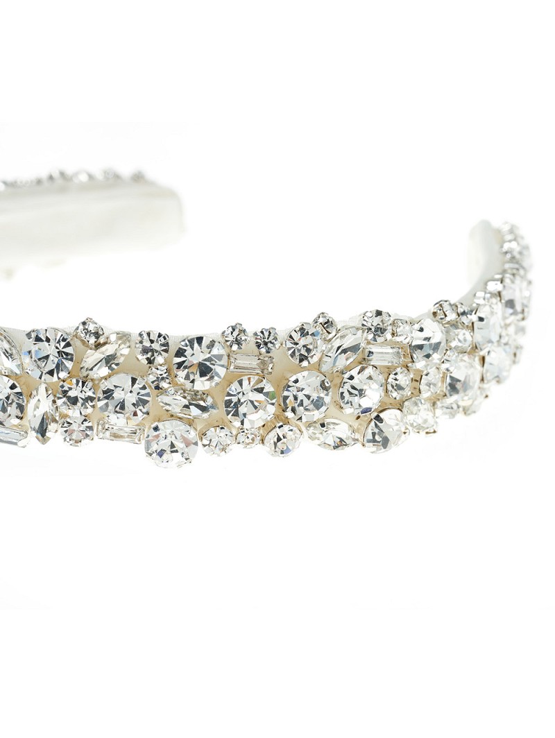 - Modern silver-colored tiara with Swarovski rhinestones