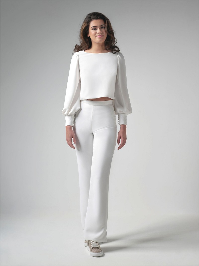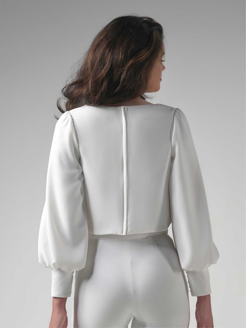 Bridal top made of ivory-coloured crêpe fabric with long, wide sleeves and a concealed zipper mid-back | Dana line