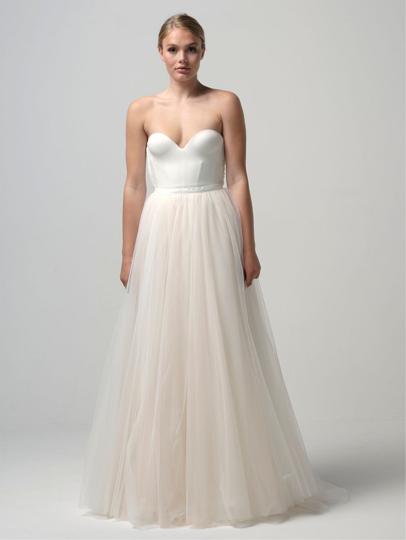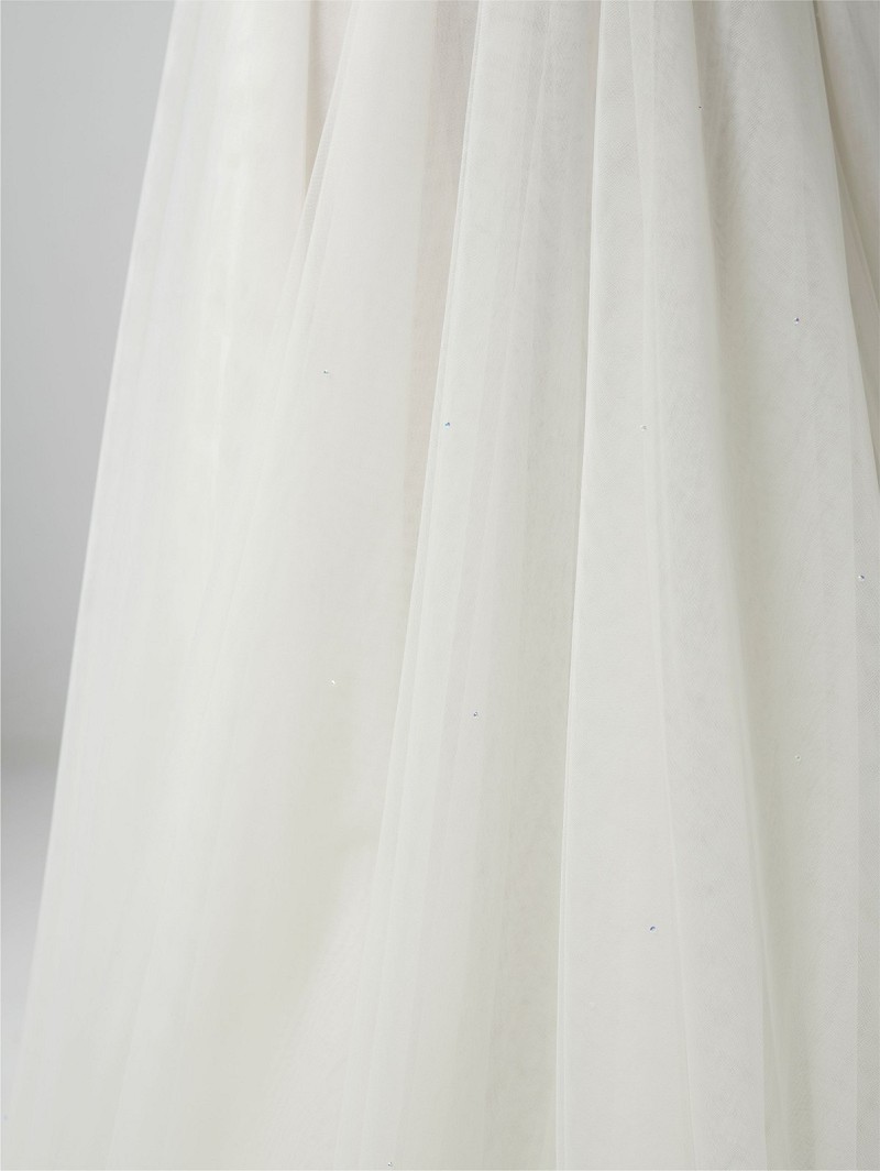 - Características: Sobrefalda de tul, con una pequeña cola, disponible en marfil y en la combinación de colores marfil con blush, con adornos de cristal A/B, longitud 120 cm, disponible en las tallas XS a XXXL