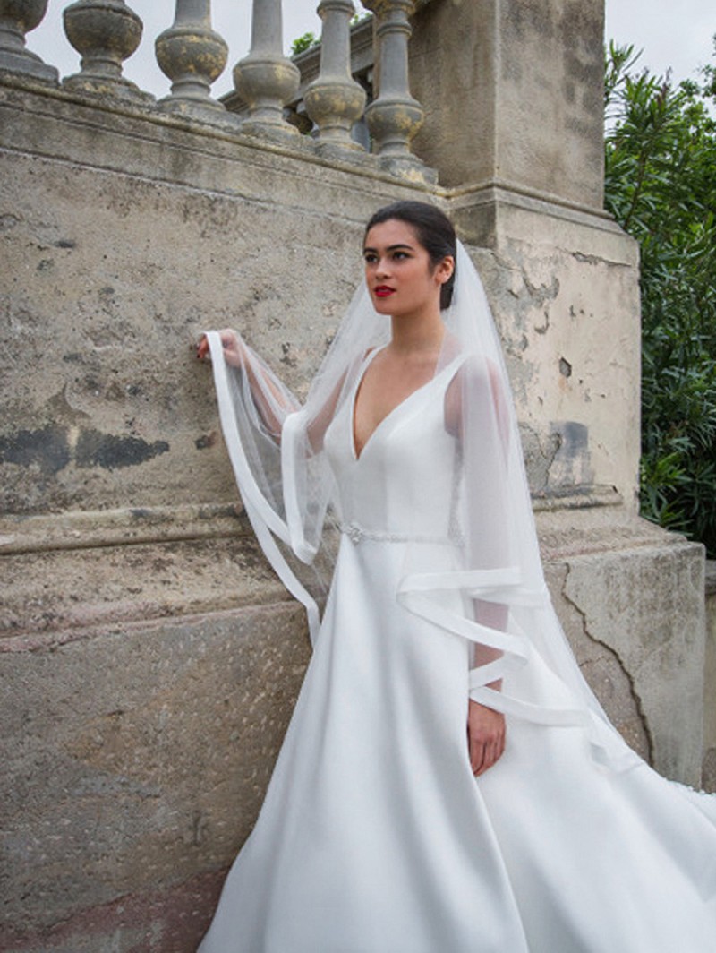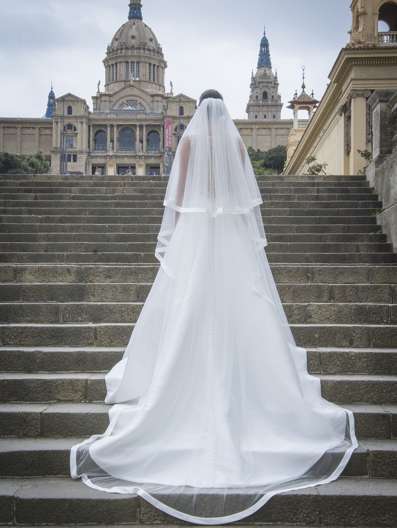 Velo de la colección de Randy's Favourites. Velo de dos capas en suave tul con una banda de satén. Longitud 300 cm.