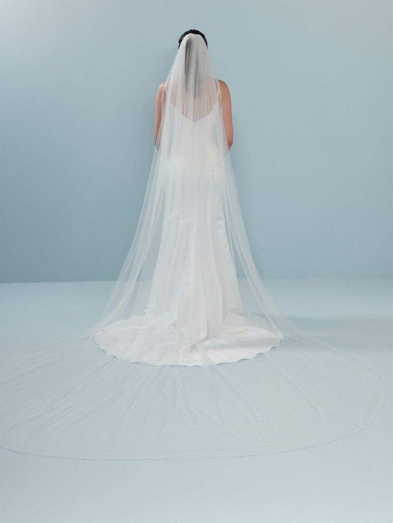 - Cuando esté completamente listo para estar a la moda, debe elegir este velo de tul suave de color marfil de una sola capa. Este velo tiene decoraciones de cristal de lujo que se extienden desde la parte superior del velo hasta todo el velo. El velo tiene una longitud de 350 cm (137.7 pulgadas).