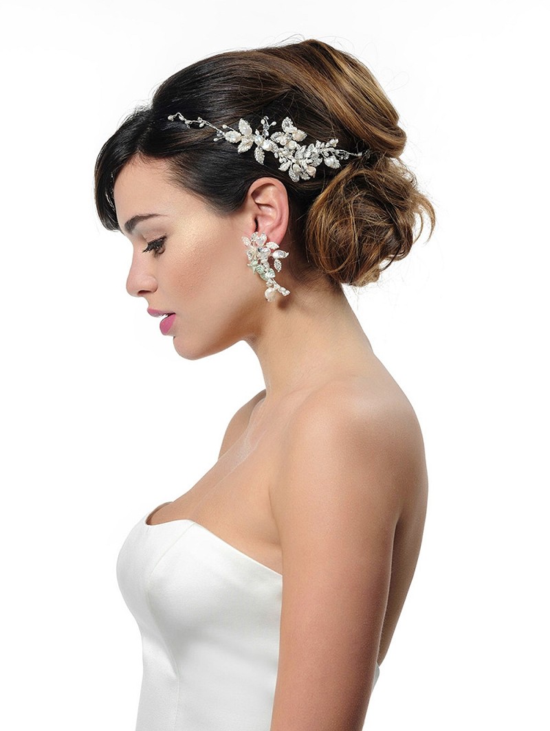- Ces boucles d’oreilles existent à partir d’éléments différents : feuilles, perles d’eau douce ivoire, fleurs et strass. Ces boucles d’oreilles apportent ce détail supplémentaire à votre look de mariée.