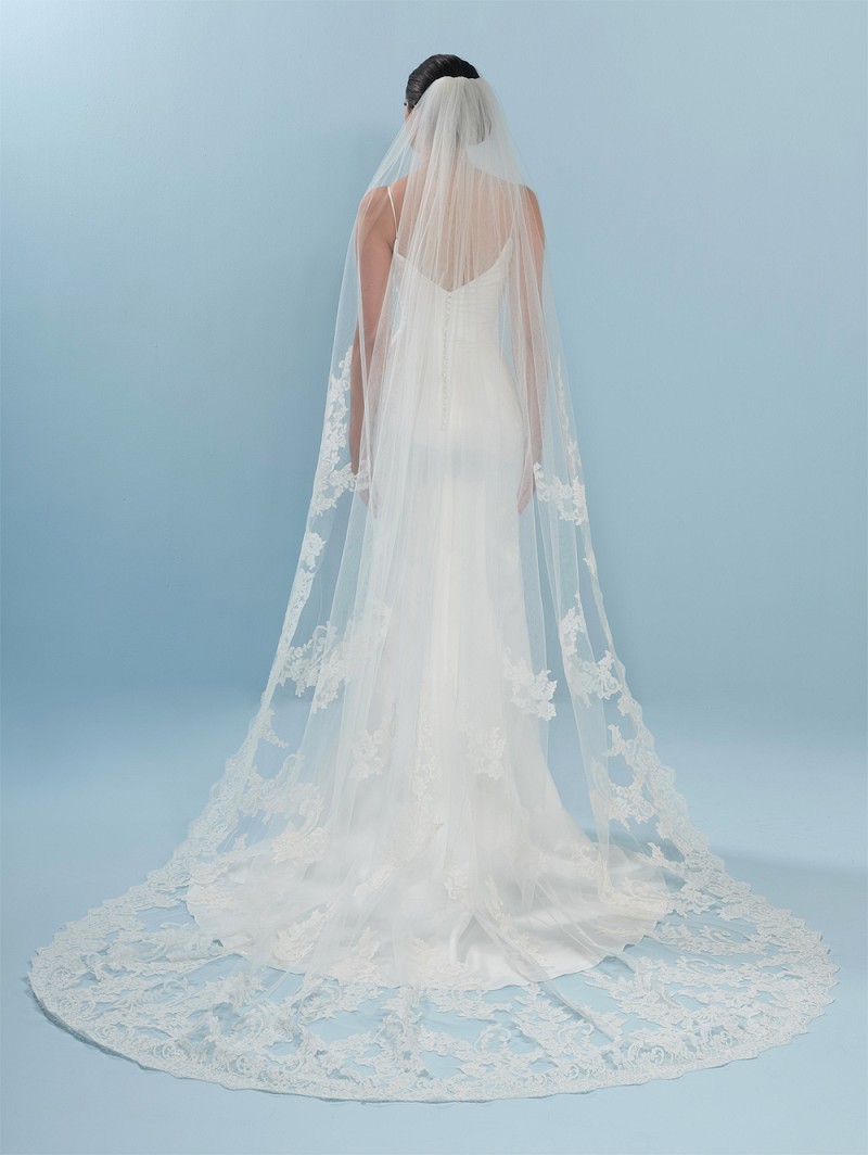 - Si vous voulez ressembler à une princesse pendant une journée, choisissez ce voile en tulle moyen de couleur ivoire avec de la dentelle traditionnelle française. Montrez que vous êtes à la hauteur durant cette journée. Ce voile a des applications à partir des épaules et du milieu du dos. La longueur de ce voile est de 280 cm (110.2 pouces).