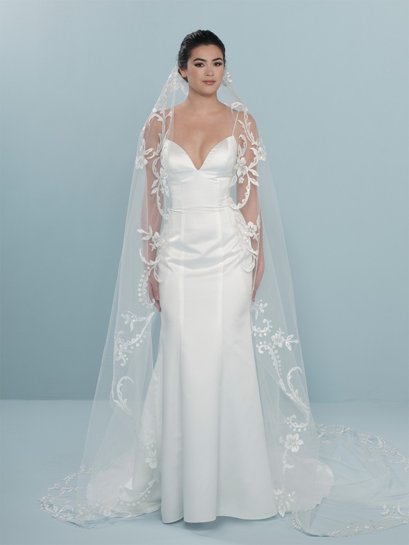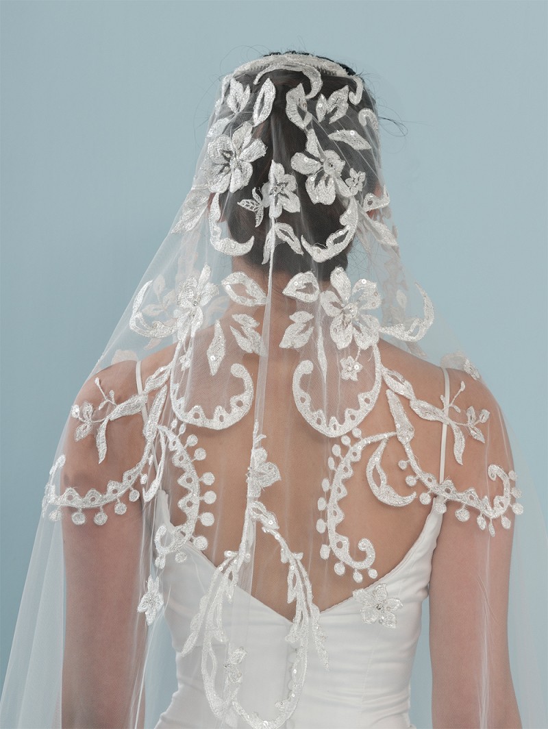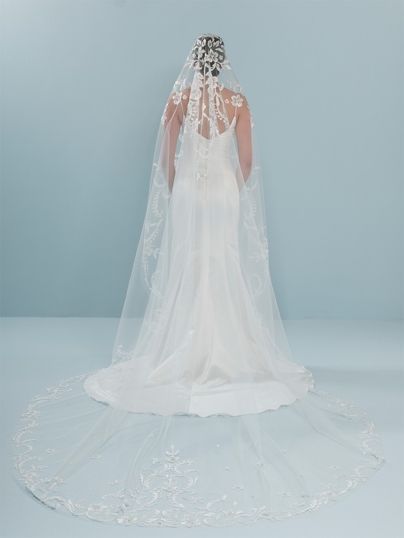 - Vous pouvez réaliser votre mariage de rêve en portant ce voile de couleur ivoire fait d’une seule couche en tulle moyen. Ce voile est agrémenté d’un motif de fleurs brodées sur tout le voile mais il y a aussi des perles, des cristaux et des paillettes. Les applications sur ce voile commencent au niveau du peigne avec lequel vous fixez le voile dans vos cheveux. La longueur de ce voile est de 300 cm (118.1 pouces).