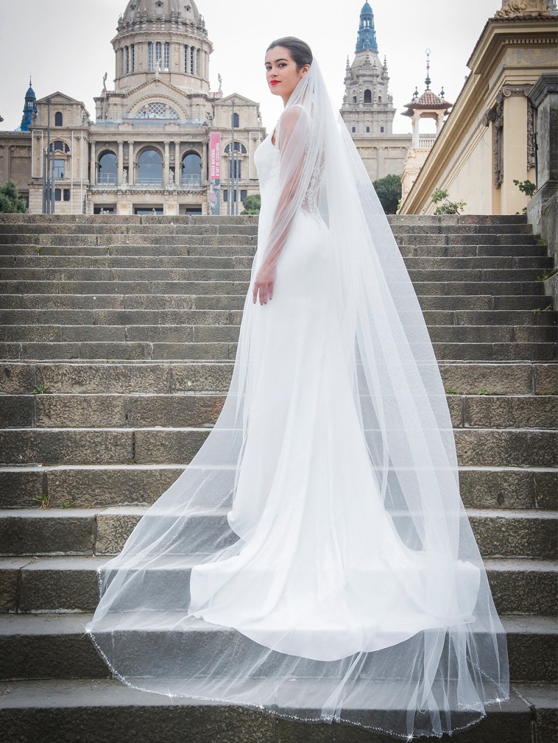 Voile de la collection de Randy's Favourites. Voile simple couche en tulle doux orné de cristaux et de strass. Longueur 300 cm.