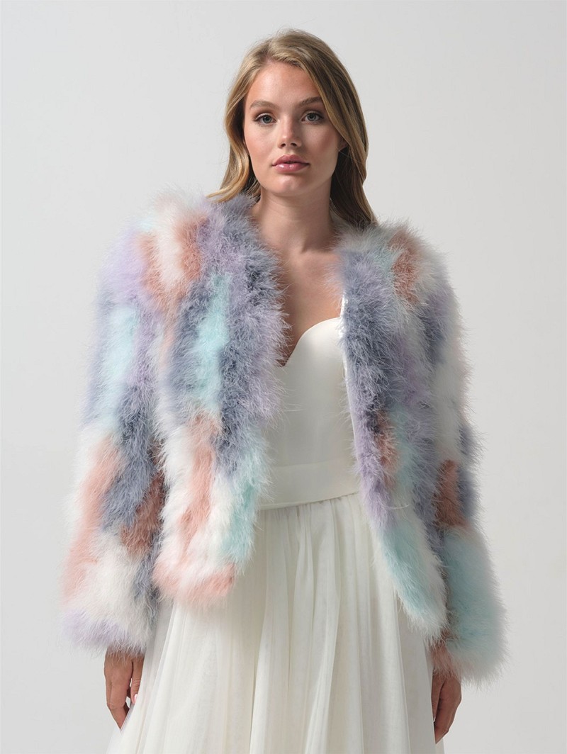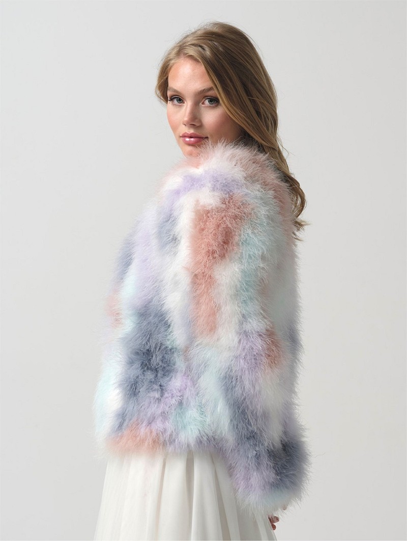 - Product: BOL-24 – Jacket made out of real multi-coloured marabou feathers