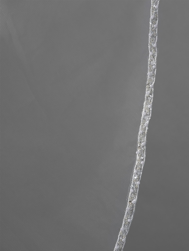 Single-layer veil in medium tulle with an edge of pearls and sequins. Length 120 cm.Also available in other lengths.