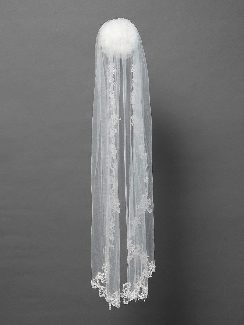 Single-layered veil in soft tulle adorned with lace and sequins. Length 120 cm.Also available in other lengths.