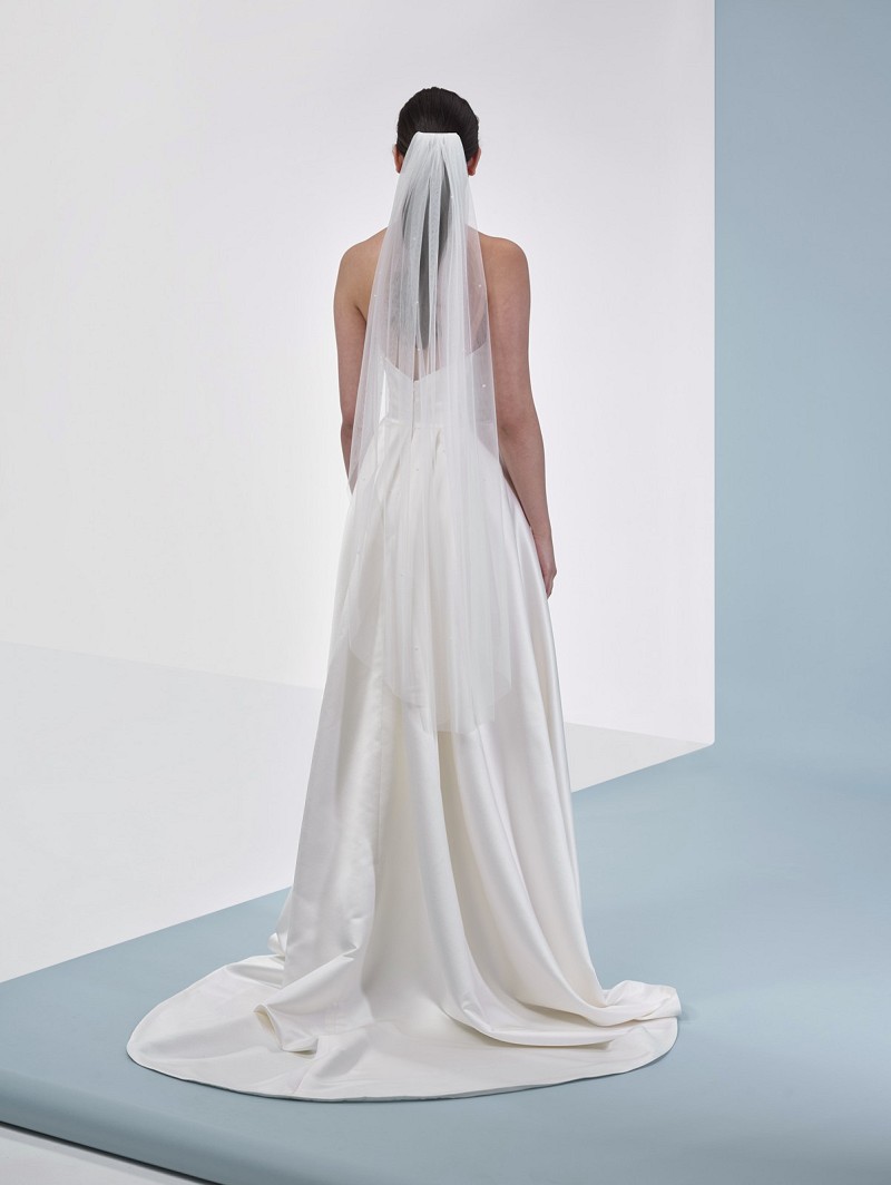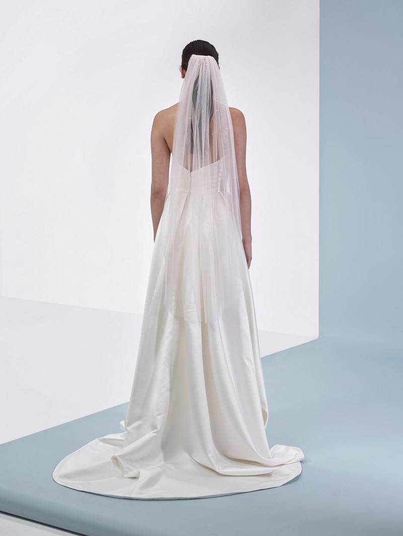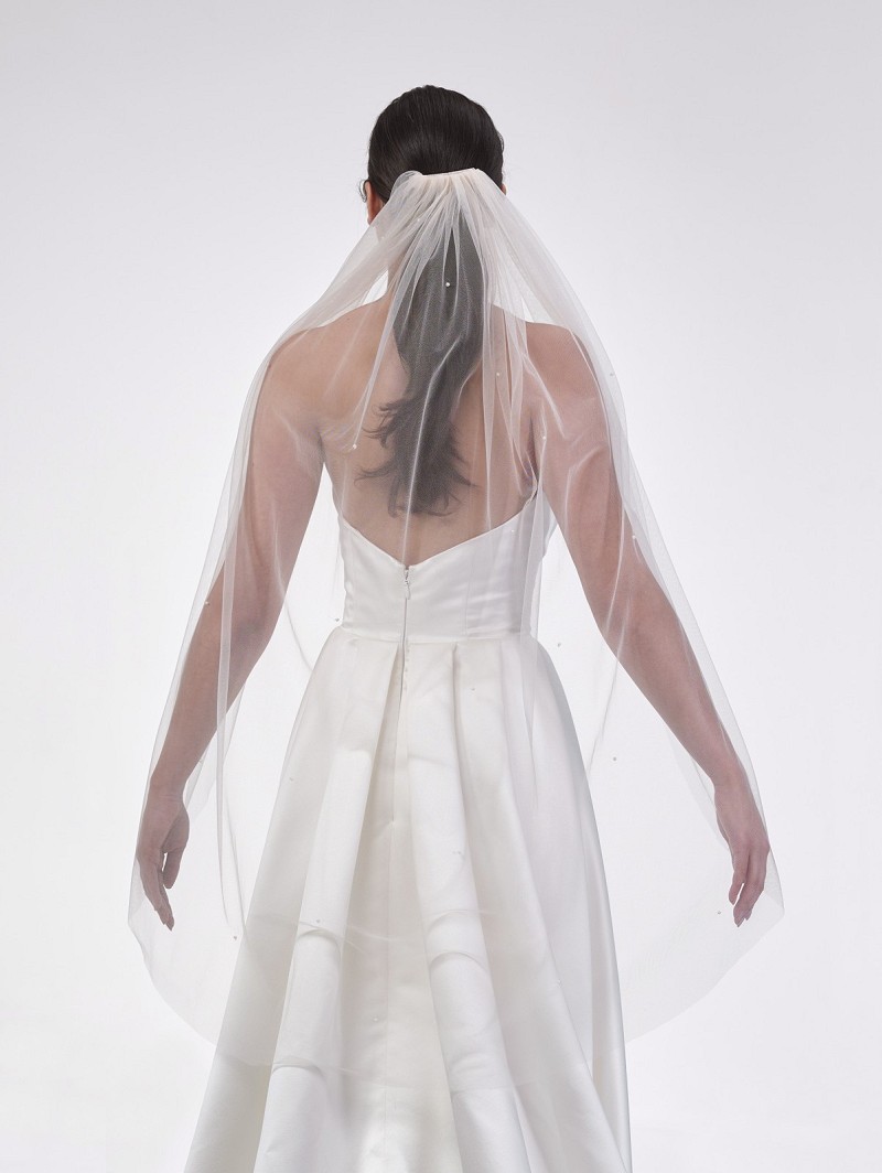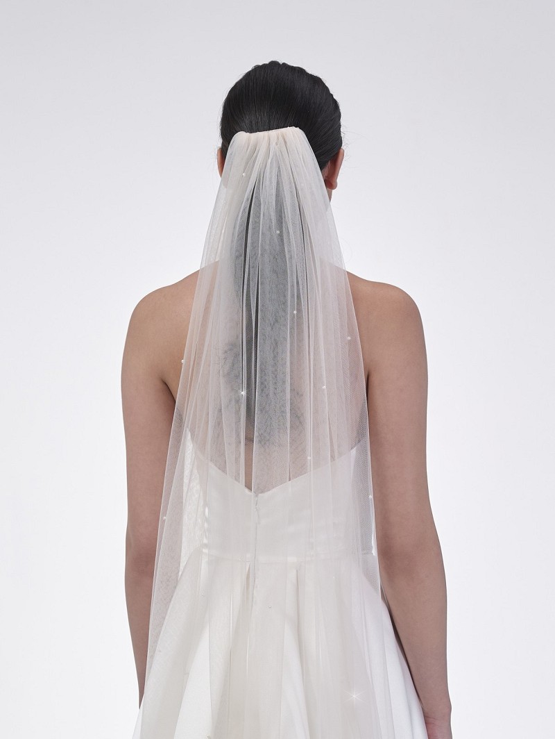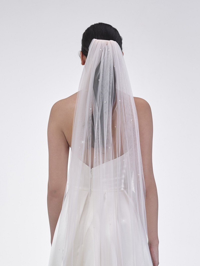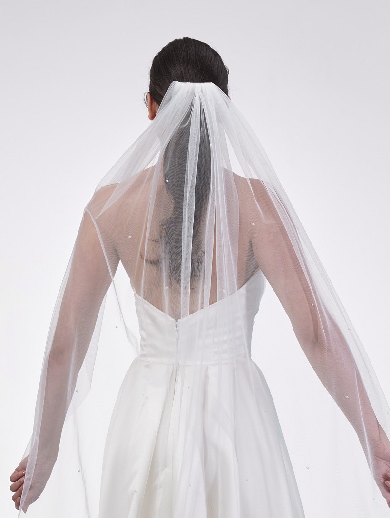 Single-layer veil made out of soft-tulle decorated with ivory-coloured pearls