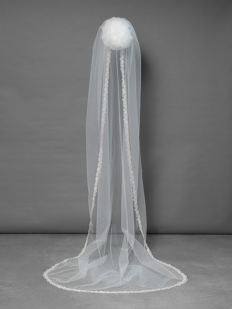 Single layer veil in soft tulle with an embroidered motif. Length 280cm.