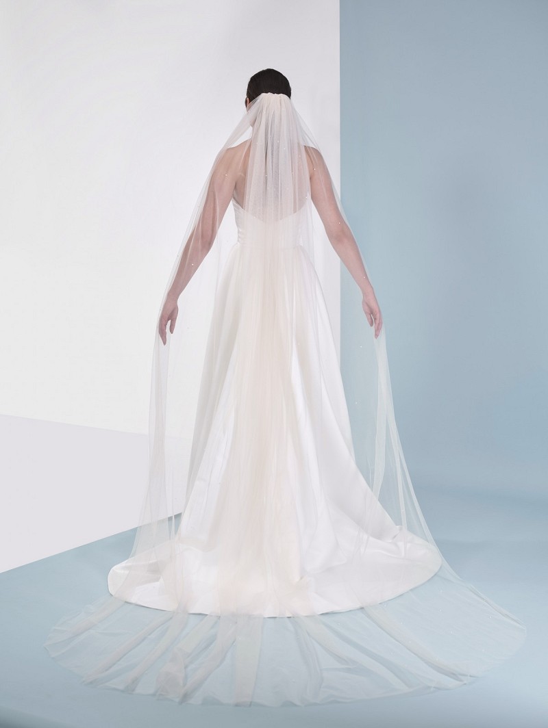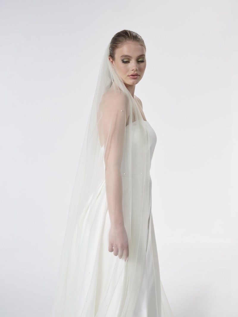- Product: S48-300/1/Soft – Single-layer bridal veil made out of soft-tulle embellished with ivory-coloured pearls