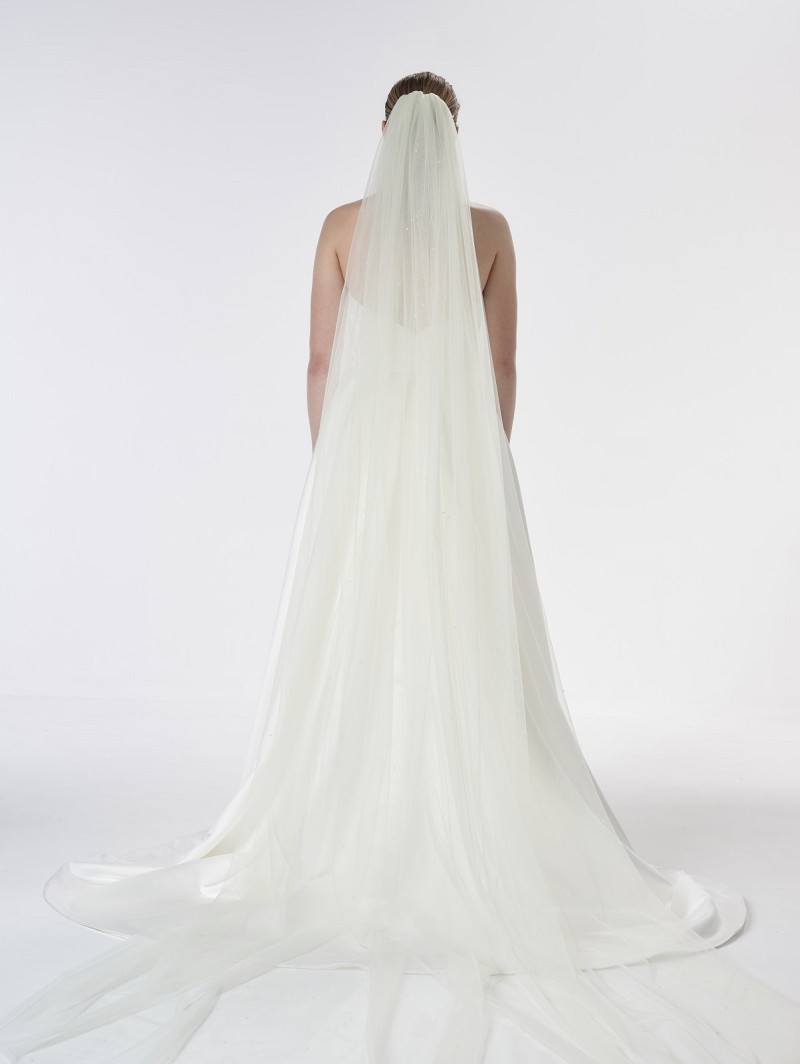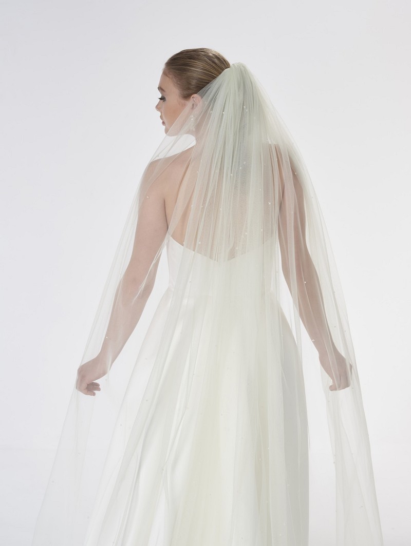 - When you choose for a wedding look with a wonderful veil, make sure to check veil S48-300/1/Soft out of the Essential Collection of Poirier. This veil of 300 cm (118.1 inch) is made out of single-layer soft-tulle, and is embellished with ivory-coloured pearls. This veil is available in 4 different colour varieties:
