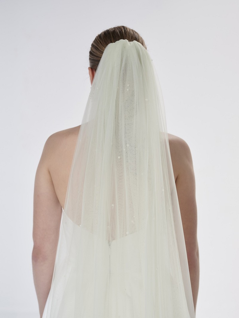 - This veil is embellished with ivory-coloured pearls