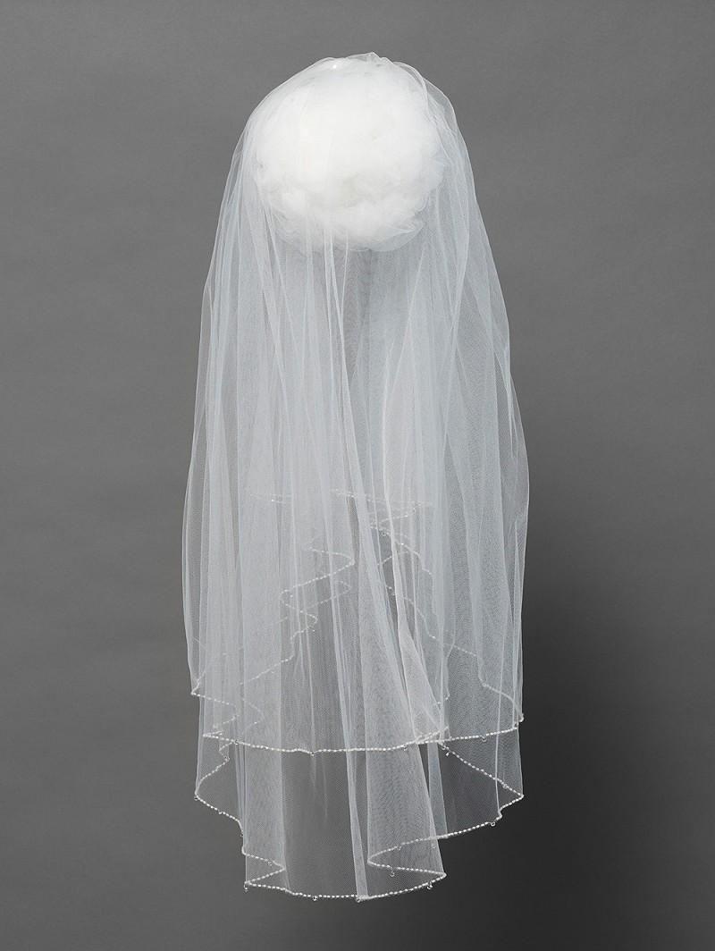 This veil consists of two layers of medium tulle and is adorned with Japanese Matsuno strass. Length 75 cm.Also available in other lengths.
