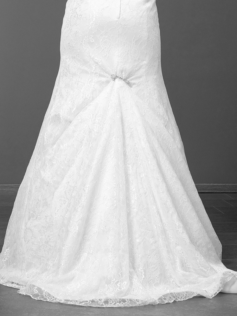 Sleepspeld met strass en pareltjes. Een sieraad waarmee men de sleep omhoog kan spelden tijdens het feest.