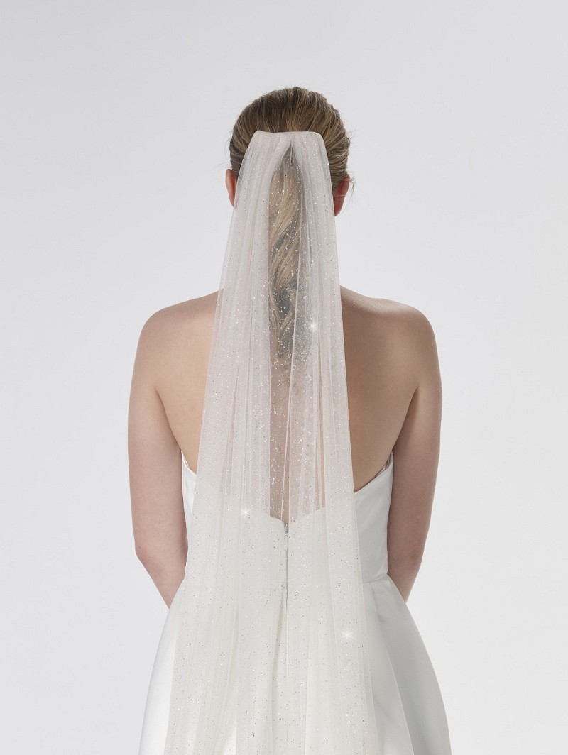 - Deze sluier is gemaakt van enkellaagse soft-glittertule