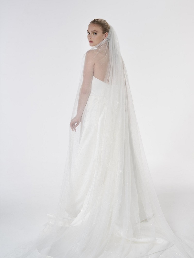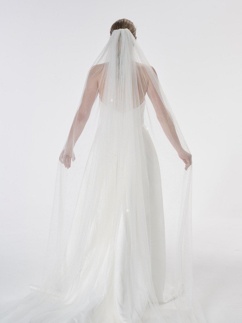• Enkellaagse sluier gemaakt van soft-glittertule