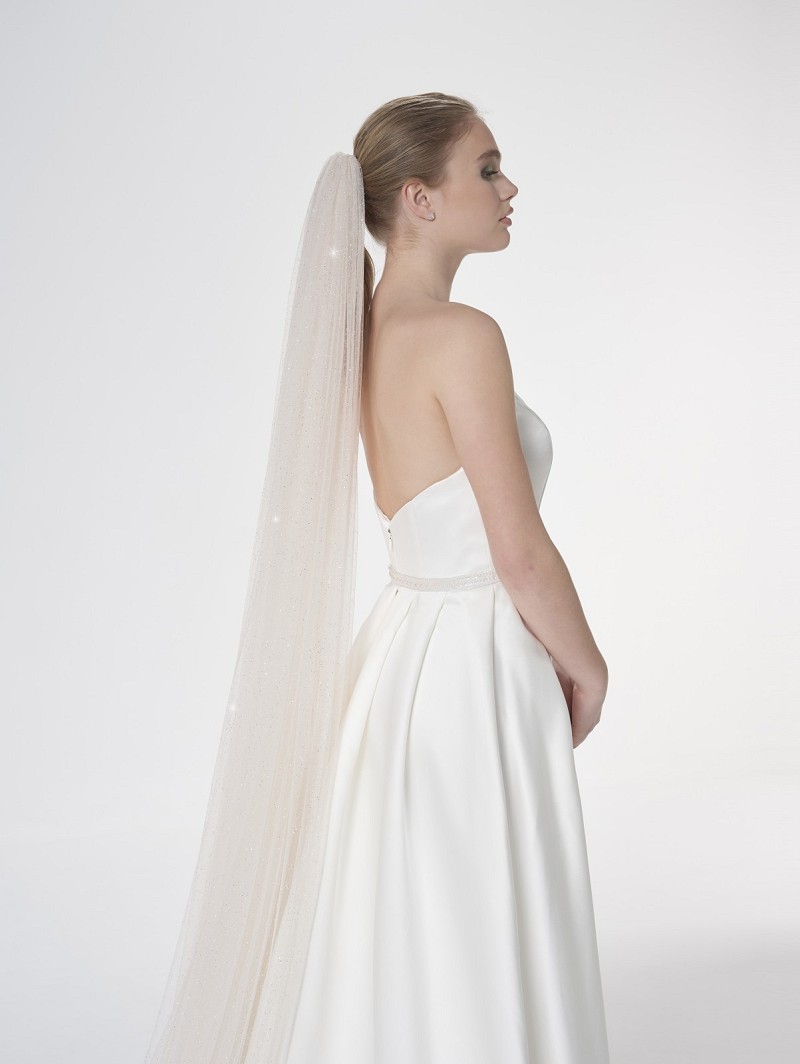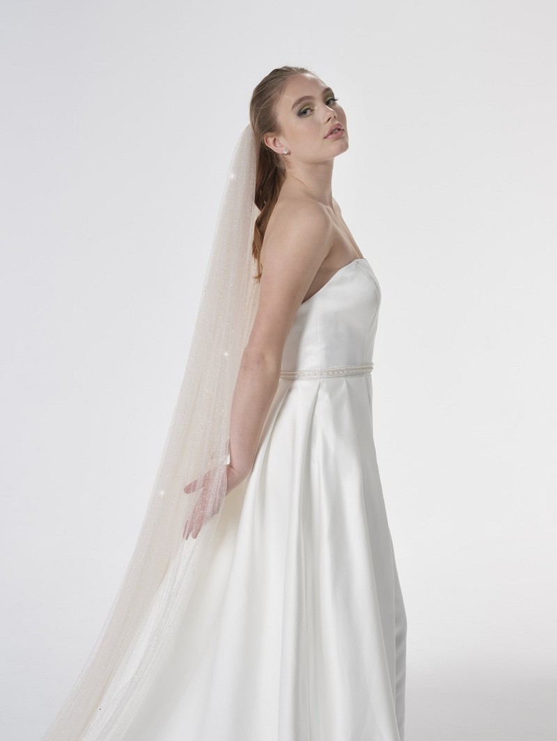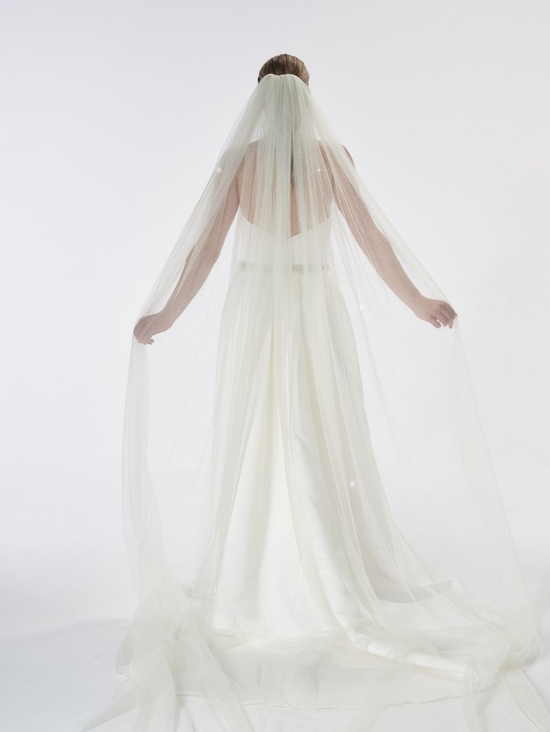 • Product: S47-300/1/Soft – enkellaagse bruidssluier gemaakt van soft-glittertule