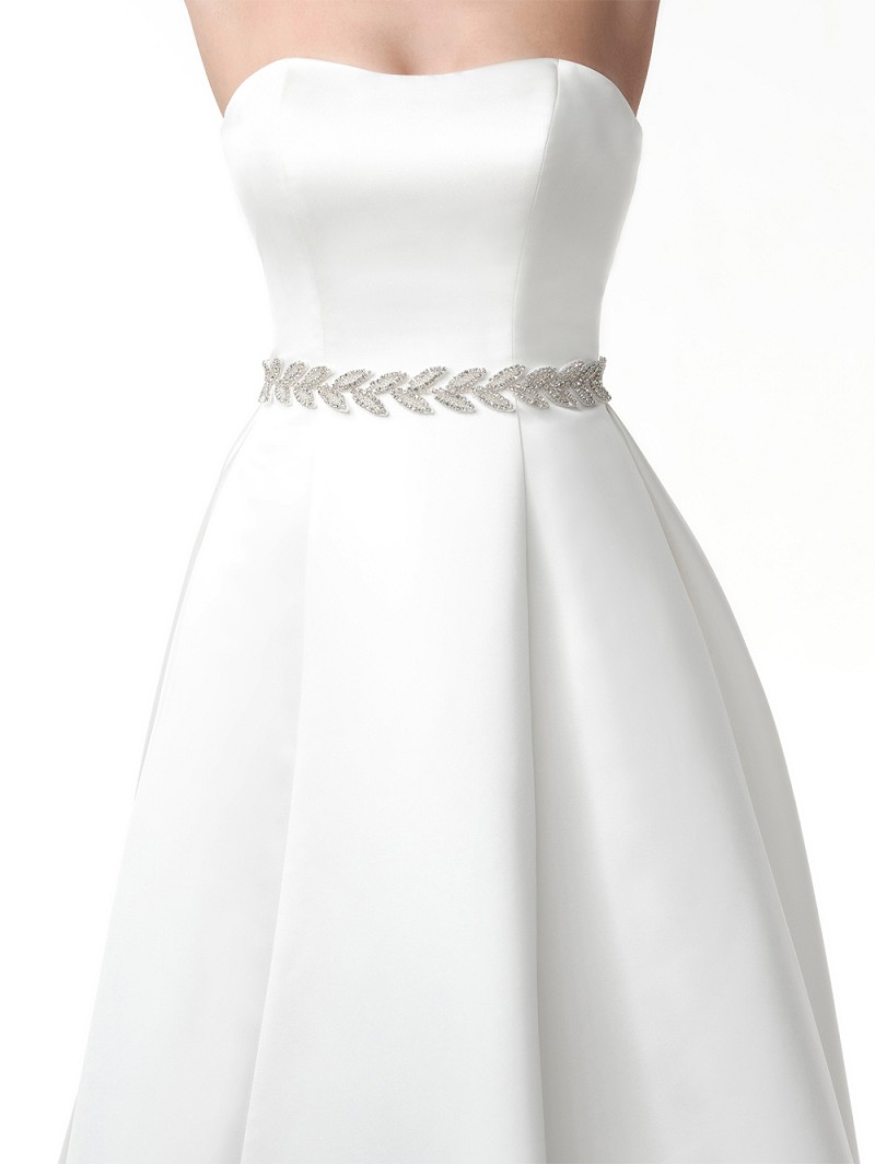 - Wanneer jij helemaal camera-ready wilt zijn voor jouw grote dag, dan kies je voor deze ivoorkleurige ceintuur met een bladversiering die geheel uit strasssteentjes bestaat. De breedte van de ceintuur is 3,5 cm en de lengte van de bladversiering met strasssteentjes is 76 cm. De totale lengte van deze ceintuur is 276 cm. Deze ceintuur wordt vastgemaakt met 4 dunne linten die middenachter geknoopt worden.