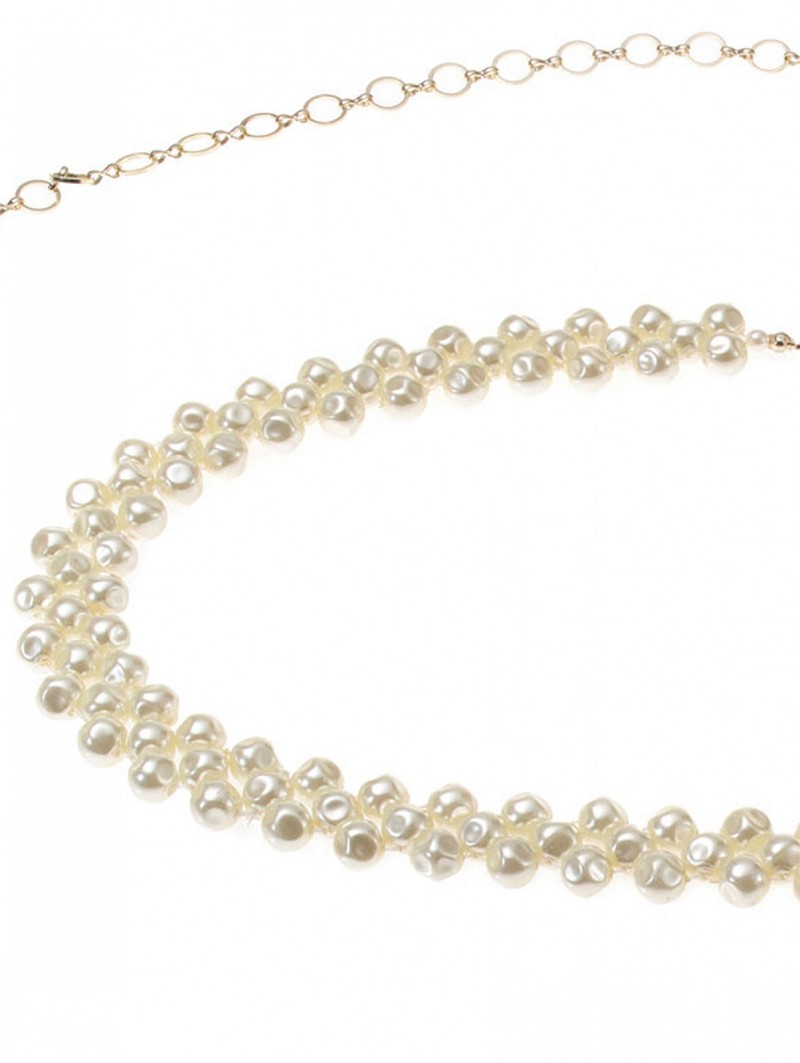 - Deze ivoorkleurige ceintuur heeft zoetwaterparels
