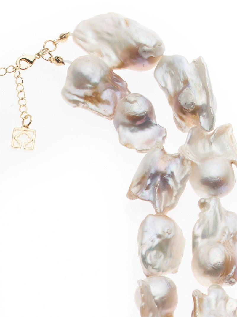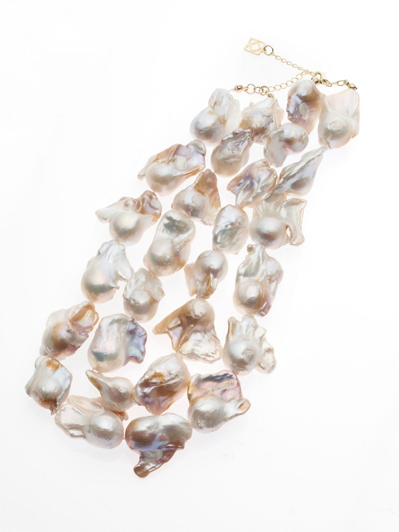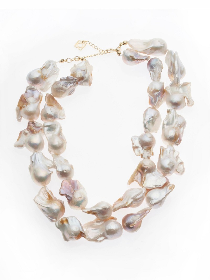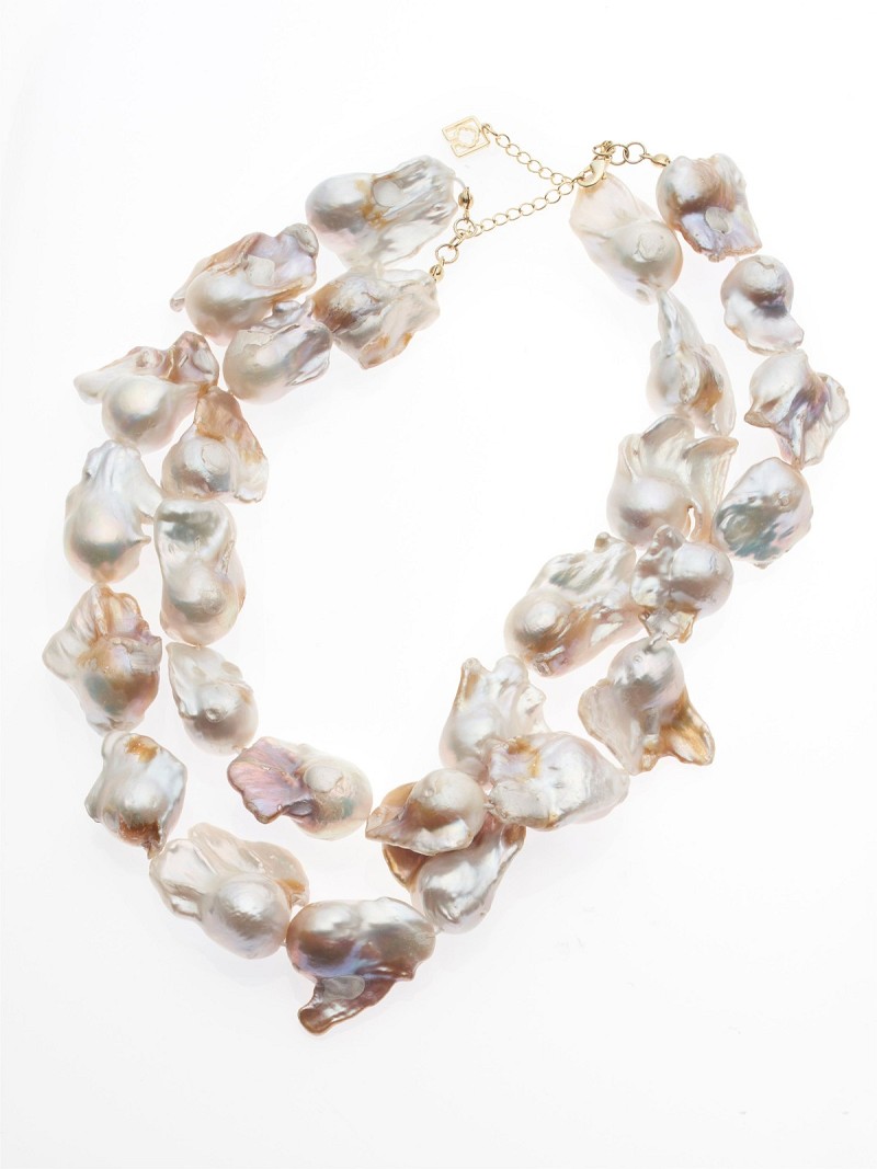 Dubbele ketting met grote zoetwaterparels in natuurtinten | Goud