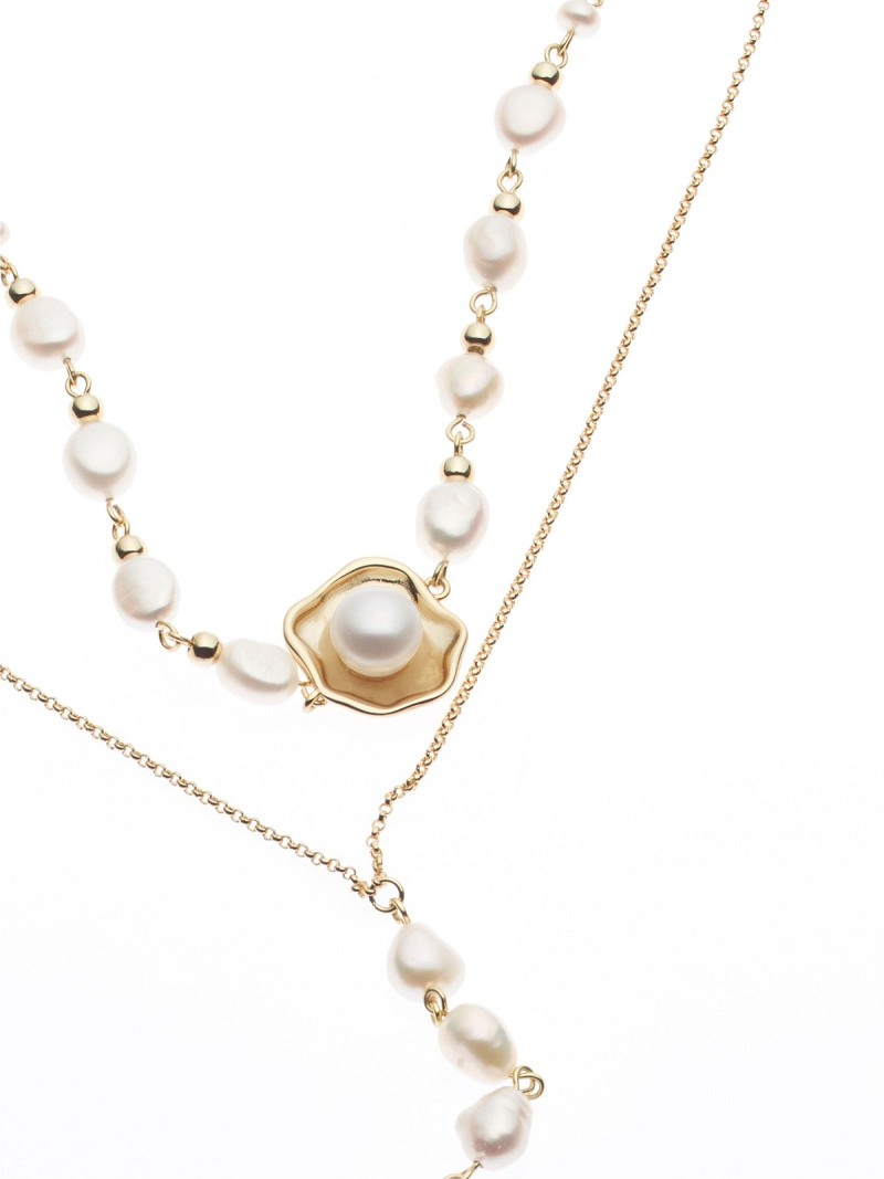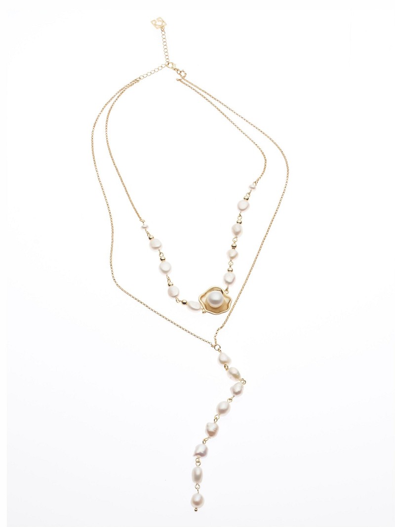 Dubbele ketting met een hanger en zoetwaterpareltjes