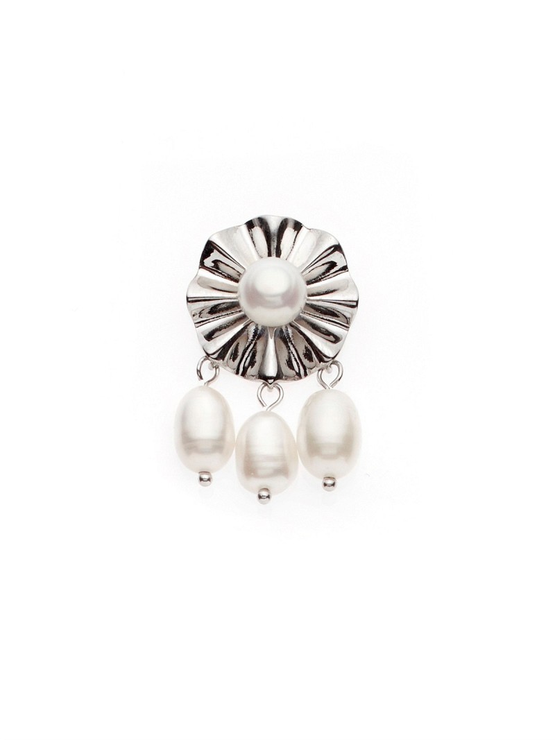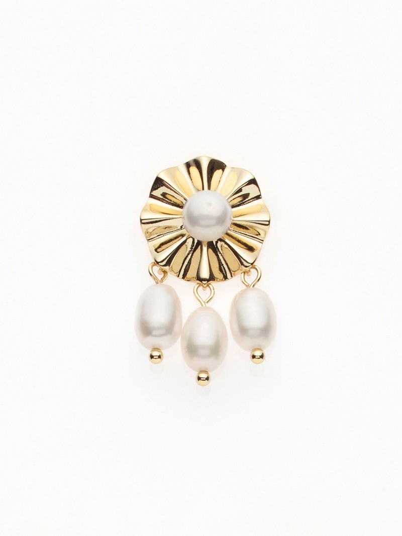 Oorbellen met een zoetwaterparel en drie kettinkjes met zoetwaterpareltjes | Verkrijgbaar in zilver en goud