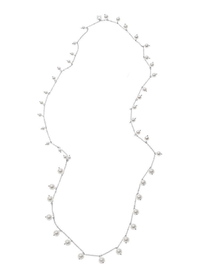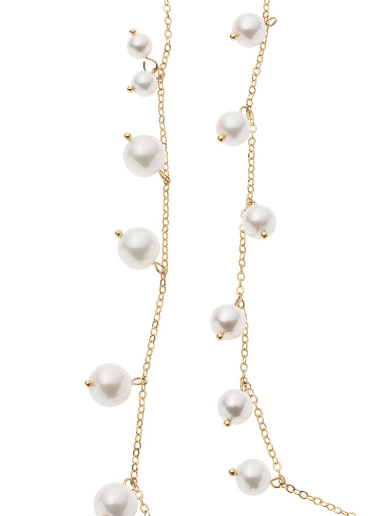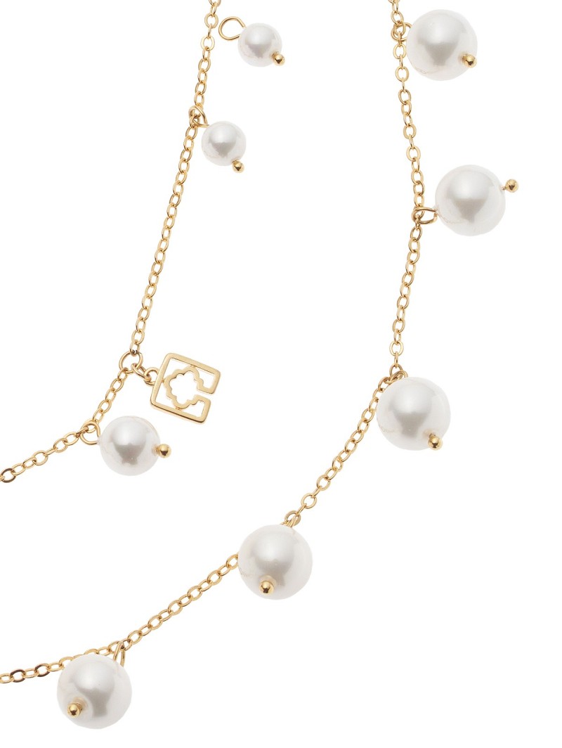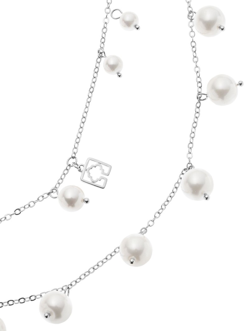 Kies voor een prachtige eyecatcher in je bridal look met deze halsketting van Poirier. Deze zilveren of gouden ketting is zowel lang als dubbel te dragen. Daarnaast heeft dit juweel een versiering van glimmende parels van verschillende groottes. Deze halsketting heeft ook een kleine hanger met het monogram van Poirier in de kleur van het juweel.