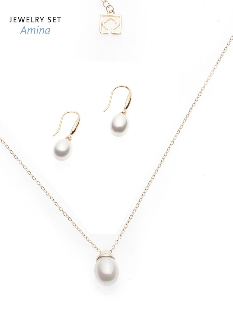 - Zowel de ketting als de oorbellen hebben een druppelparel als hanger