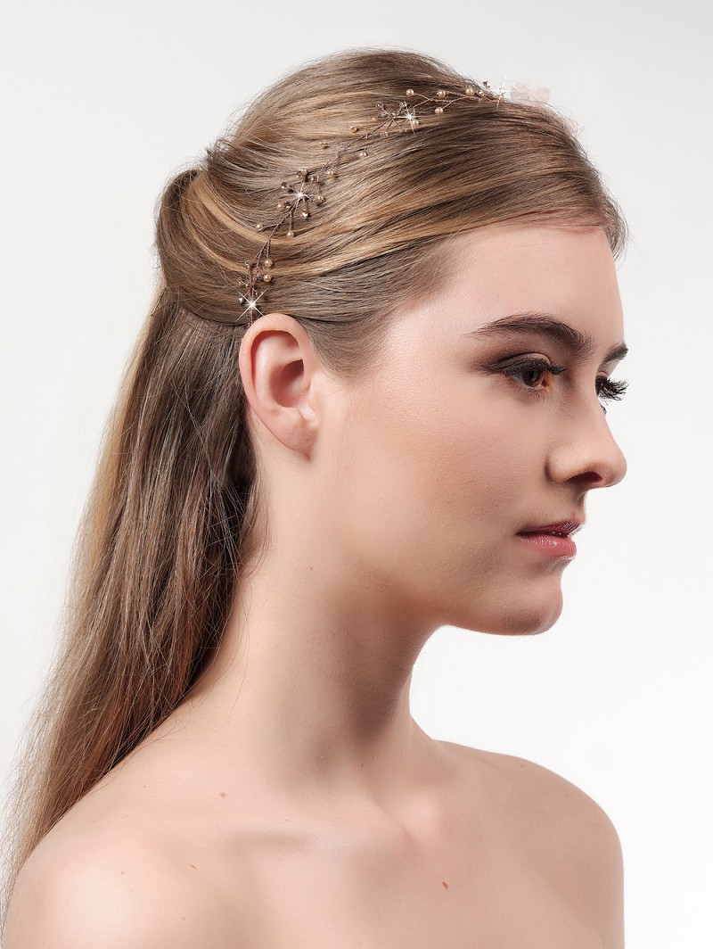 - Haarband met een basis van goudkleurige draad, champagnekleurige