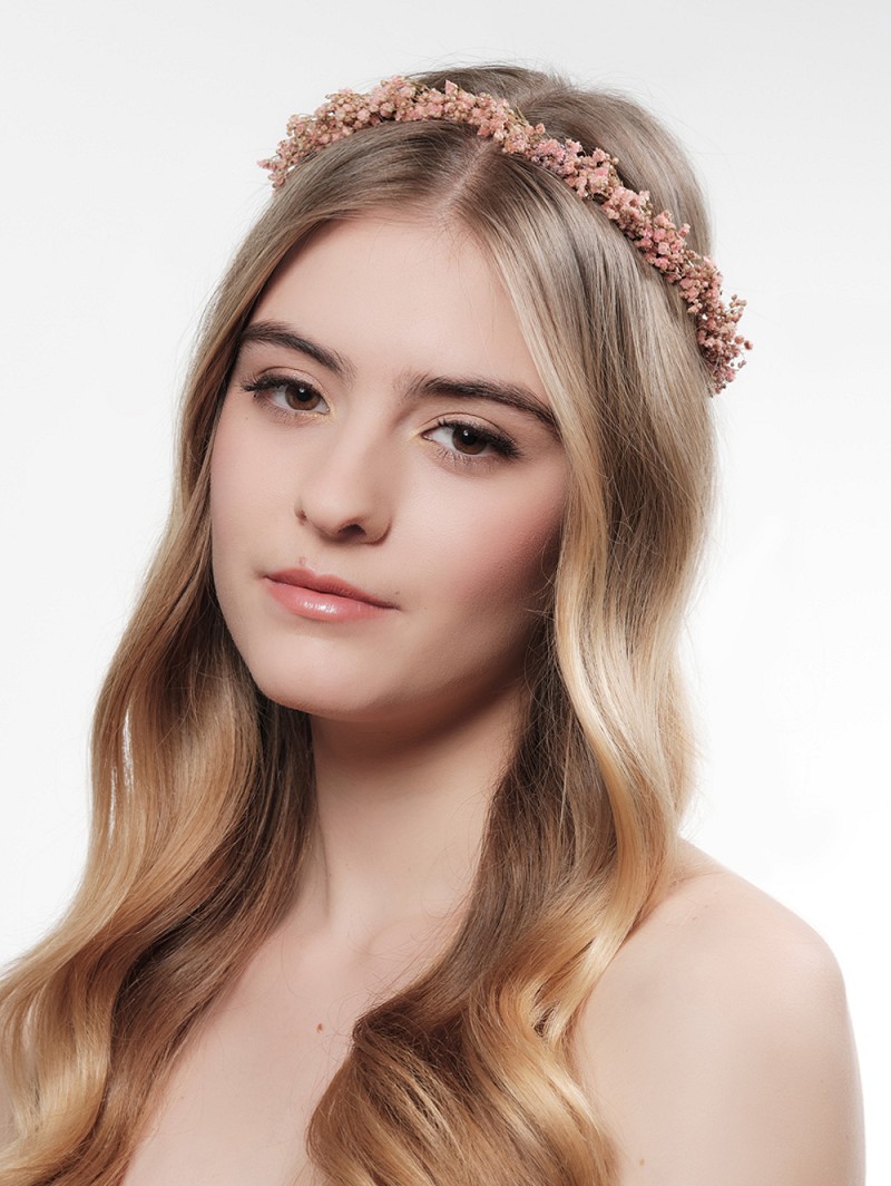 - Haarkrans met echt ivoorkleurig of rosékleurig gipskruid