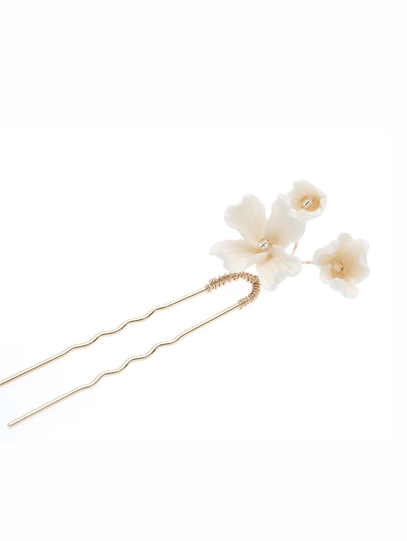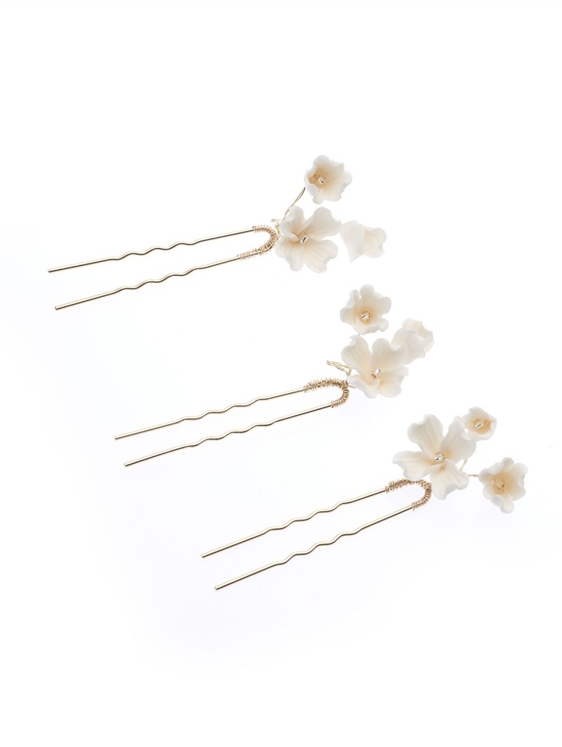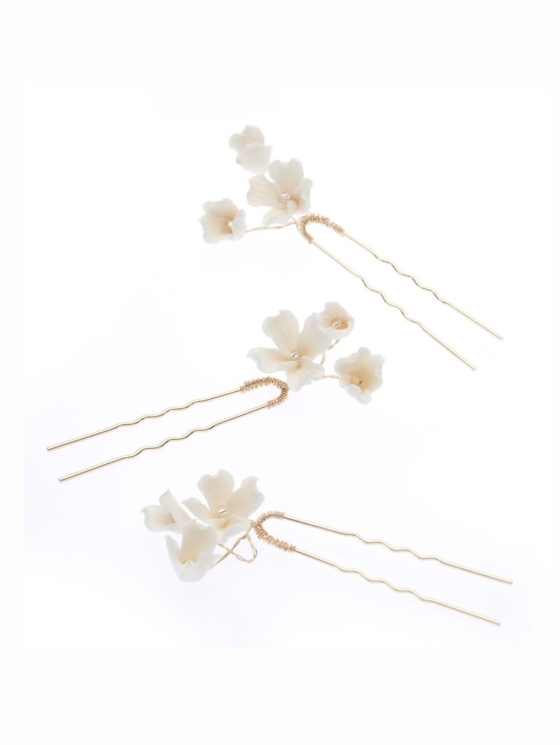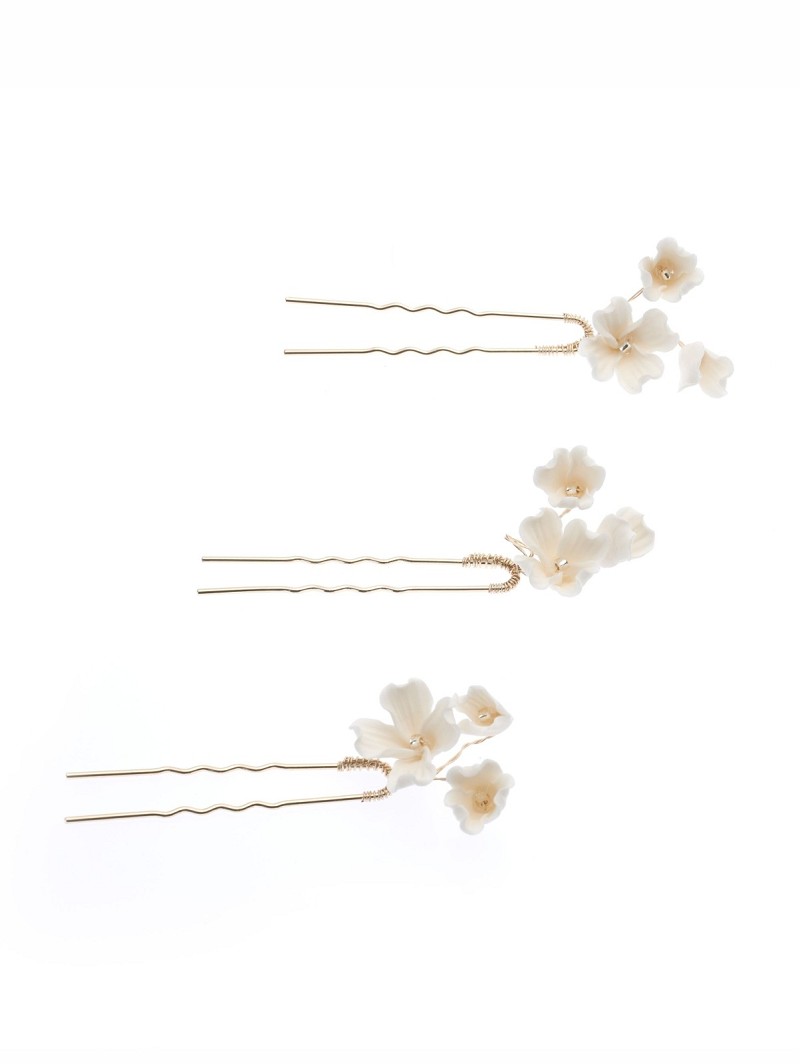 Haarsieraad met porseleinen bloemetjes op pin | Set van 3