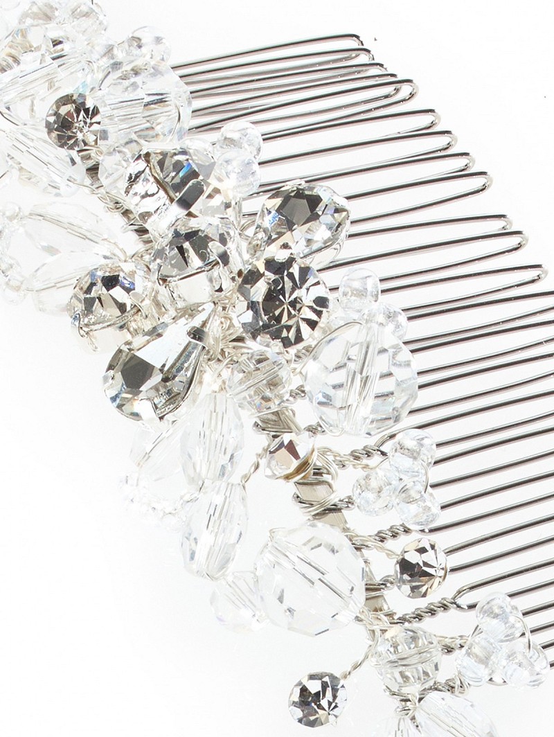 - Zilverkleurige haarkam met kristalletjes en strasssteentjes