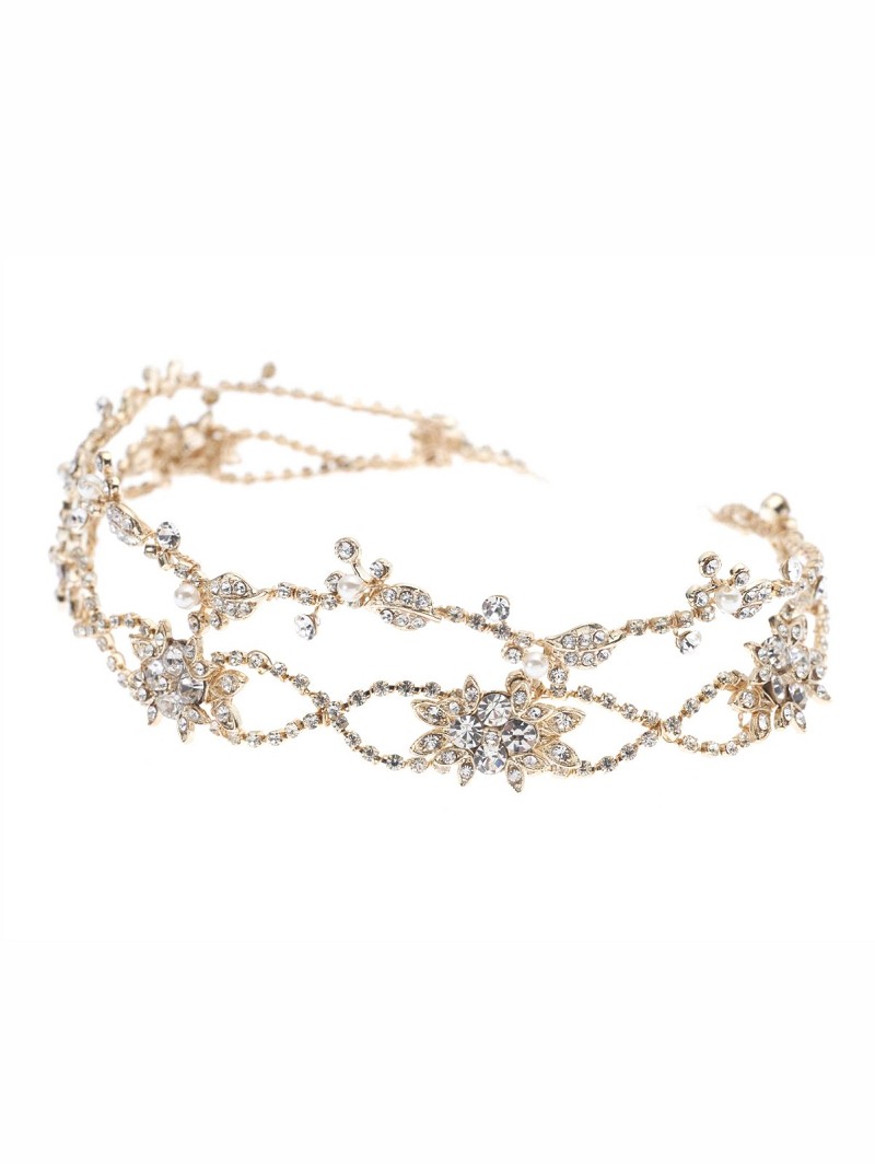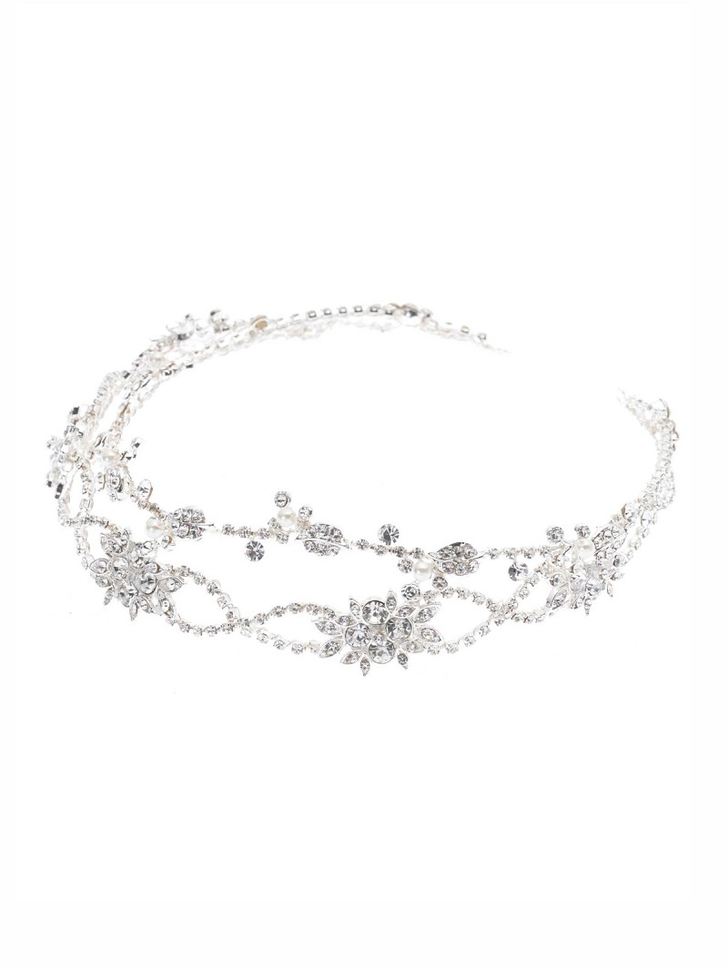 Haarsieraad met bloemvormen die versierd zijn met strasssteentjes en parels