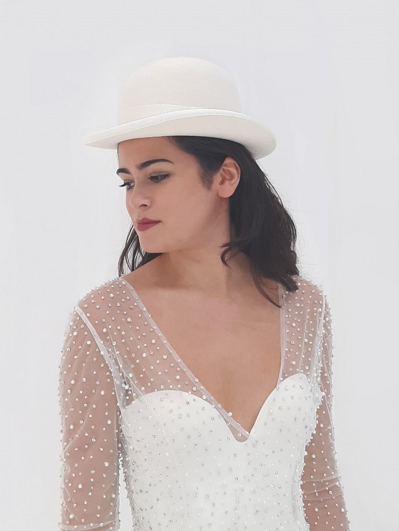 - Wanneer je op zoek bent naar het ultieme bruidsaccessoire om je bridal outfit helemaal compleet te maken, kies dan voor bolhoed Coco, oftewel artikel HT-400, uit de Trend Collection van Poirier. Deze hoed is ivoorkleurig en kan worden gecombineerd met een bruidsjurk die helemaal van “nu” is. Dit item is gemaakt van wol. Dit geweldige bruidsaccessoire is speciaal ontworpen voor trendgevoelige bruiden.
