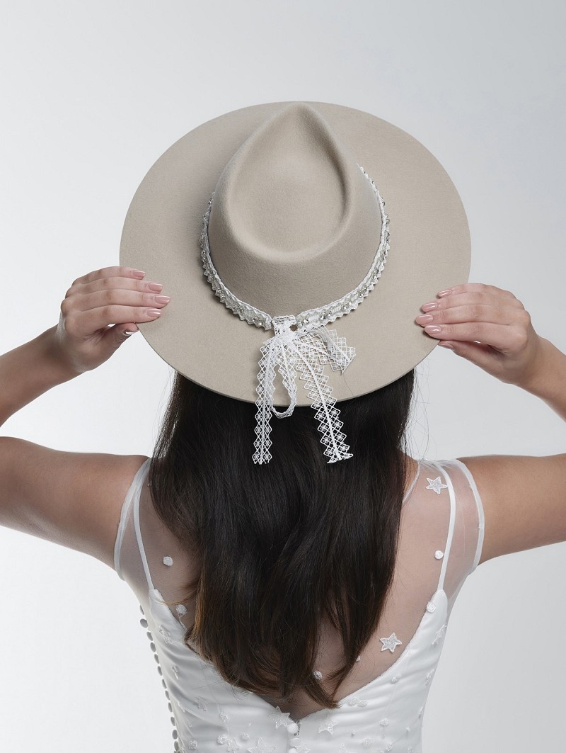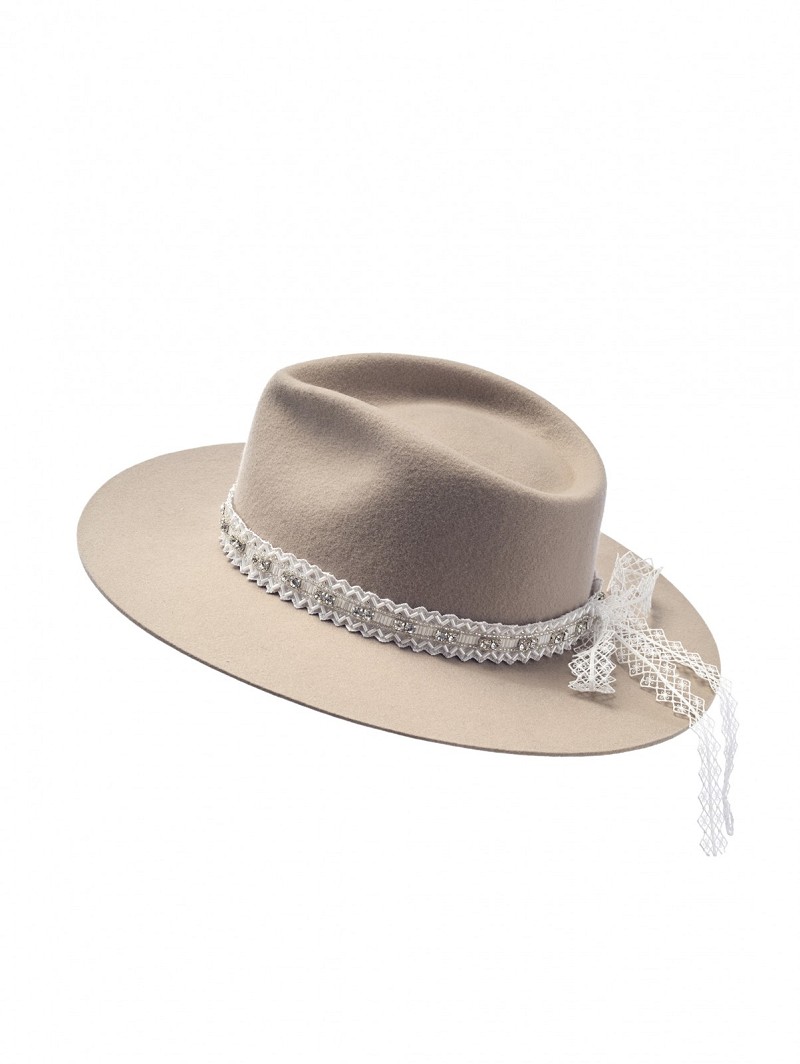 - Wanneer je je Poirier hoed extra flair wil geven, kies dan voor dit hoedaccessoire uit de Festival Collection van Poirier. Dit hoedaccessoire bestaat uit een patroon met ivoorkleurige kraaltjes en strasssteentjes op een ivoorkleurige stoffen basis. Je kunt dit hoedaccessoire combineren met ceintuur C-1212, zodat je een set kunt samenstellen die helemaal bij je bruidsjurk past.