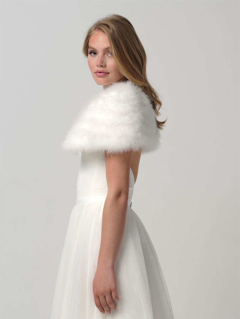 - Wanneer je een bijzonder item wil om jouw look compleet te maken, kies dan voor deze stijlvolle ivoorkleurige bolero die is gemaakt van echte maraboeveren. Deze bolero wordt over de schouders gedragen en vormt de perfecte finishing-touch bij jouw bruidsjurk. Middenachter is de bolero 21 cm lang. De bolero is uni-size.
