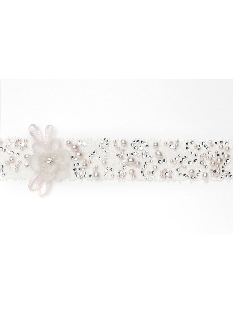 Kanten kousenband met bloem, parels en Swarovski steentjes.