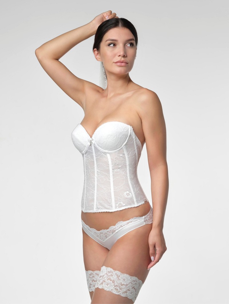 - Wanneer je op zoek bent naar luxe figuurcorrigerende bridal lingerie, kies dan voor torselet 15 300 uit de Pure Love-productlijn van Poirier. Dit torselet is gemaakt van ivoorkleurige Franse kant. Het torselet heeft zachte, voorgevormde cups en een diepe rug, hetgeen dit torselet ideaal maakt om te dragen onder een bruidsjurk met een diepe rug. Daarnaast heeft dit ivoorkleurige torselet een strapless design. Door de combinatie van figuurcorrigerende eigenschappen en dat er afneembare jarretels vast zitten aan dit torselet krijg je een uiterst romantische look. Dit lingerie-item kan worden gecombineerd met verschillende andere lingerieproducten van Poirier.